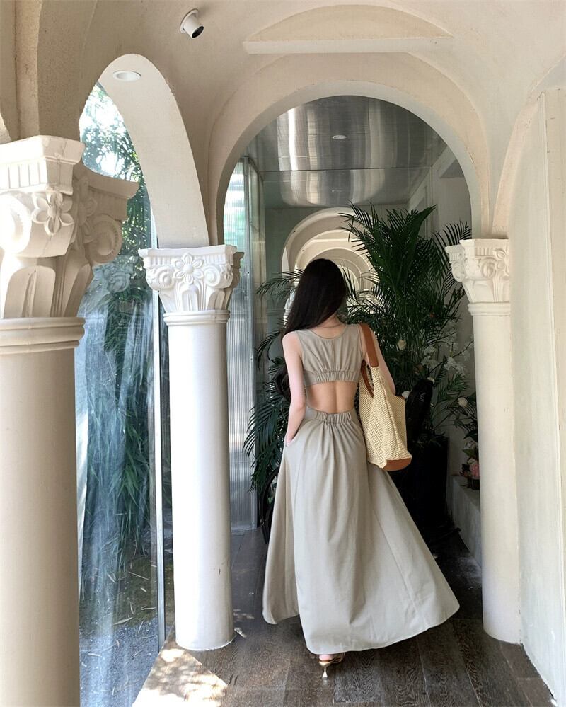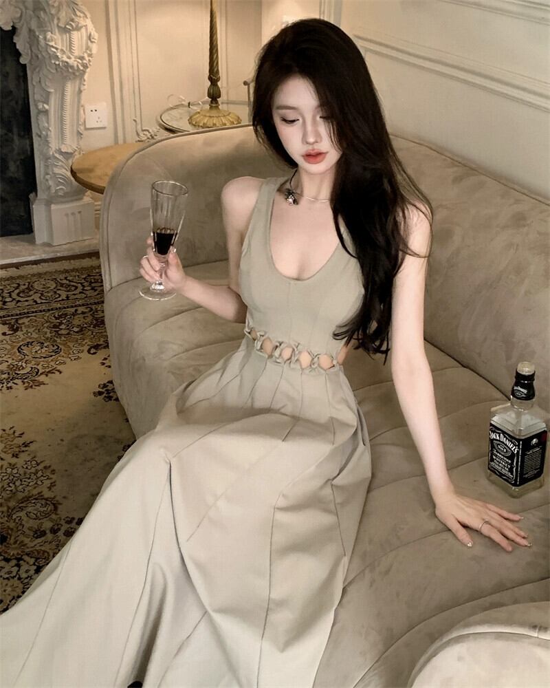 セクシーなウエストレスベストドレス女性の夏のウエストノースリーブデザインセンス背中の開いたロングスカート純粋な欲望スタイルのaラインスカート サマー 夏物 ピュア bstraw85059610218 | beaute25