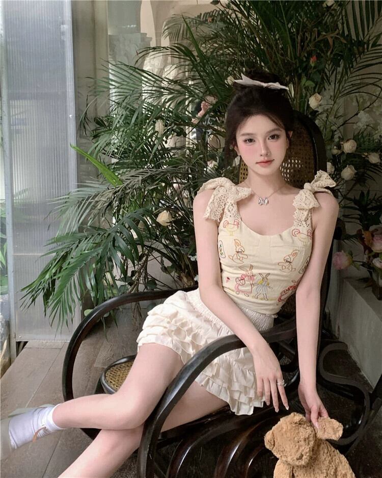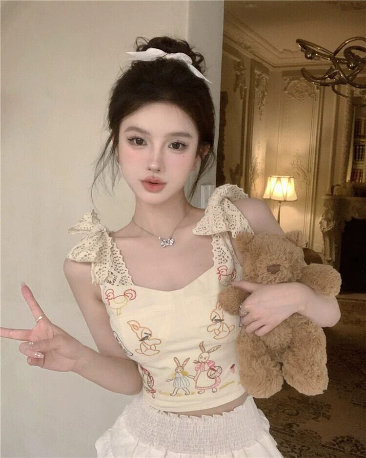 純粋な欲望漫画プリントキャミソール女性の夏の甘いレースの弓セクシーなインナートップアウターウェア リボン 大人ガーリー スウィート キュート カジュアル サマー 夏物 bstraw91371782905 | beaute25