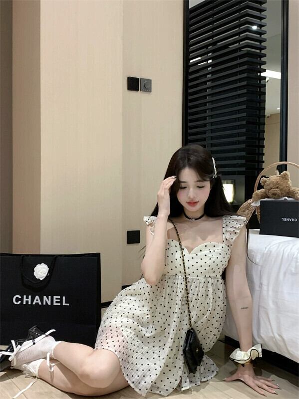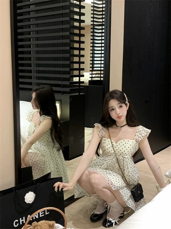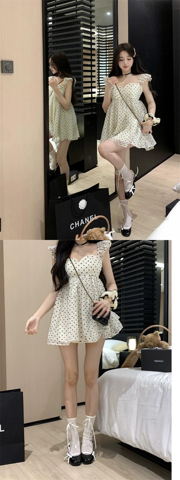 フレンチスイートポルカドットvネックドレスレディース夏レトロ小さなフライングスリーブスカート高品質小さなaラインスカート 大人ガーリー スウィート キュート カジュアル サマー 夏物 bstraw62462791495 | beaute25