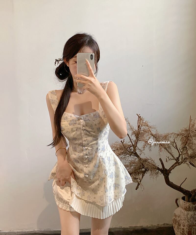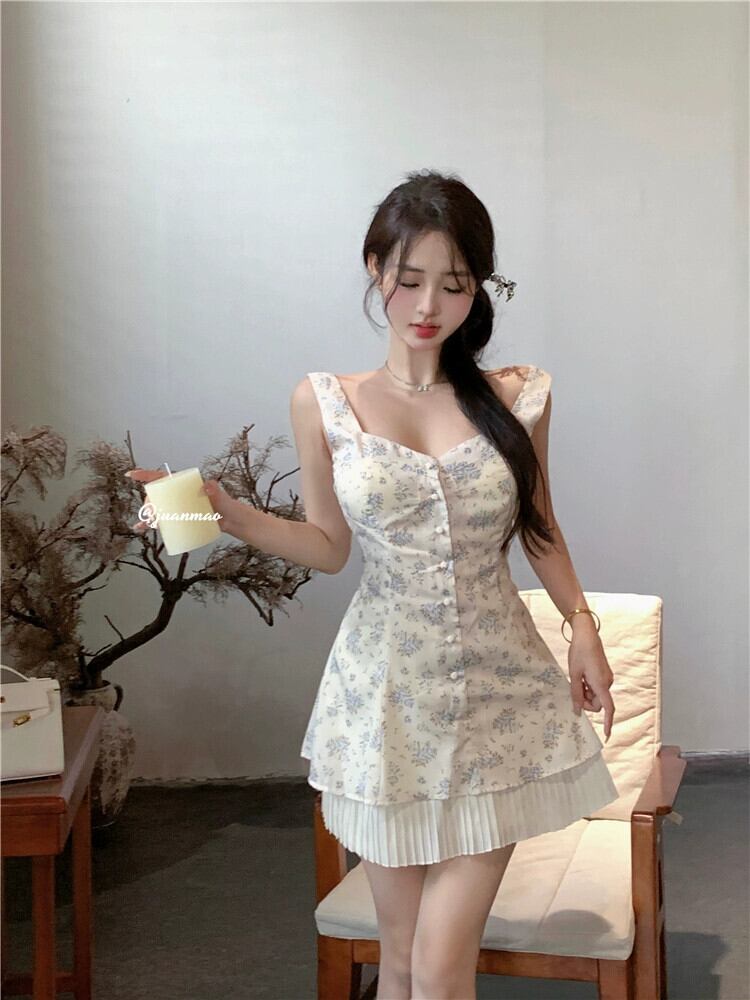 甘い女の子花柄スリングドレス女性の夏の 2023 新しい小さな気質ハイエンド A ラインスカート 大人ガーリー スウィート キュート カジュアル サマー 夏物 Aライン bstraw19357203118 | beaute25