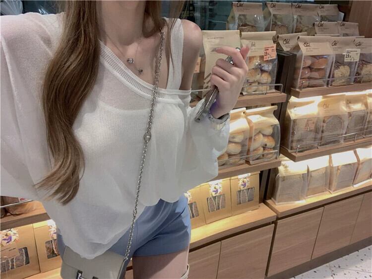 白い気質薄いセクション長袖日焼け止めブラウス Tシャツレディース夏デザインセンスニッチ緩くて薄いトップアウター ロング ホワイト サマー 夏物 bstraw39224507835 | beaute25