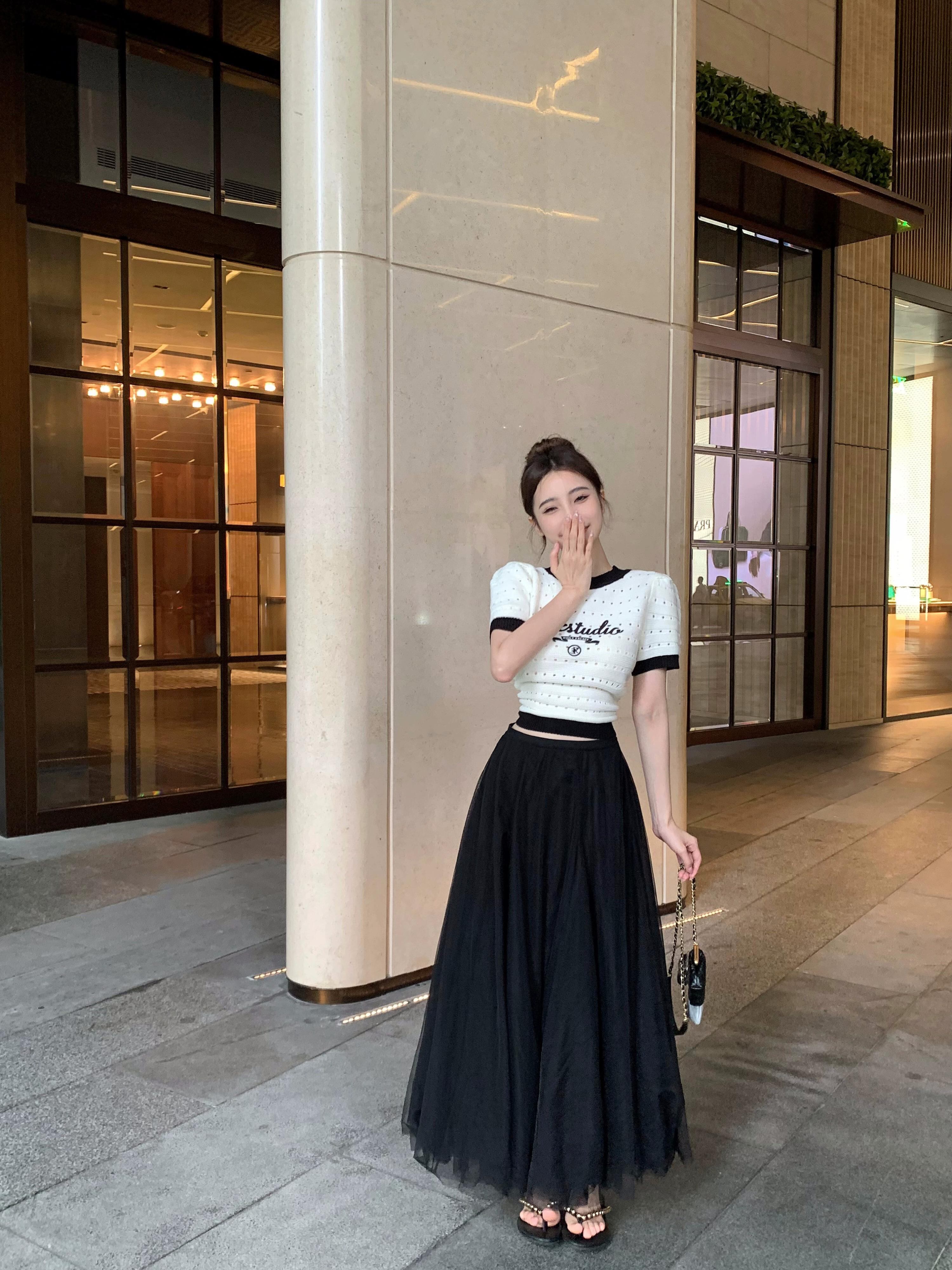 黒メッシュスカート 妖精サマースカート スーパー妖精ガーゼスカート 先進感ハーフスカート ハイウエスト気質aラインロングスカート ハイウェスト ブラック 夏物 bstraw18131096044 | beaute25