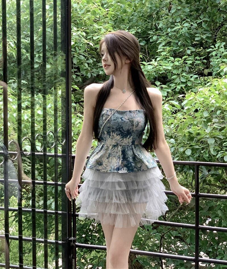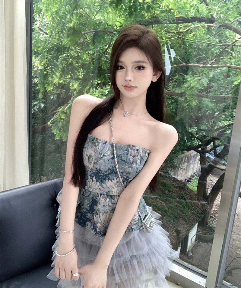甘い花柄チューブトップベスト女性の夏ショートバックレスウエスト痩身ノースリーブセクシーなトップアウター 大人ガーリー スウィート キュート カジュアル サマー 夏物 bstraw68256724738 | beaute25