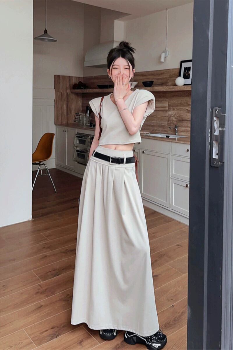 スポーツ・レジャースーツ無地キャミソールレディース夏新作スカートハイウエストロングスカートスカート2点セット ハイウェスト サマー 夏物 ソリッドカラー bstraw75152766913 | beaute25
