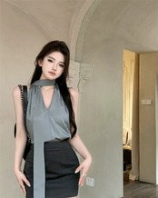 気質無地 吊りネック Vネック キャミソール レディース 夏 デザイン感 バックレス ゆったり スリム ノースリーブ トップス アウター サマー 夏物 ソリッドカラー bstraw81803261748 | beaute25