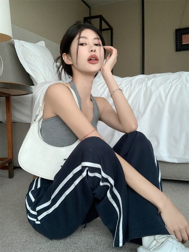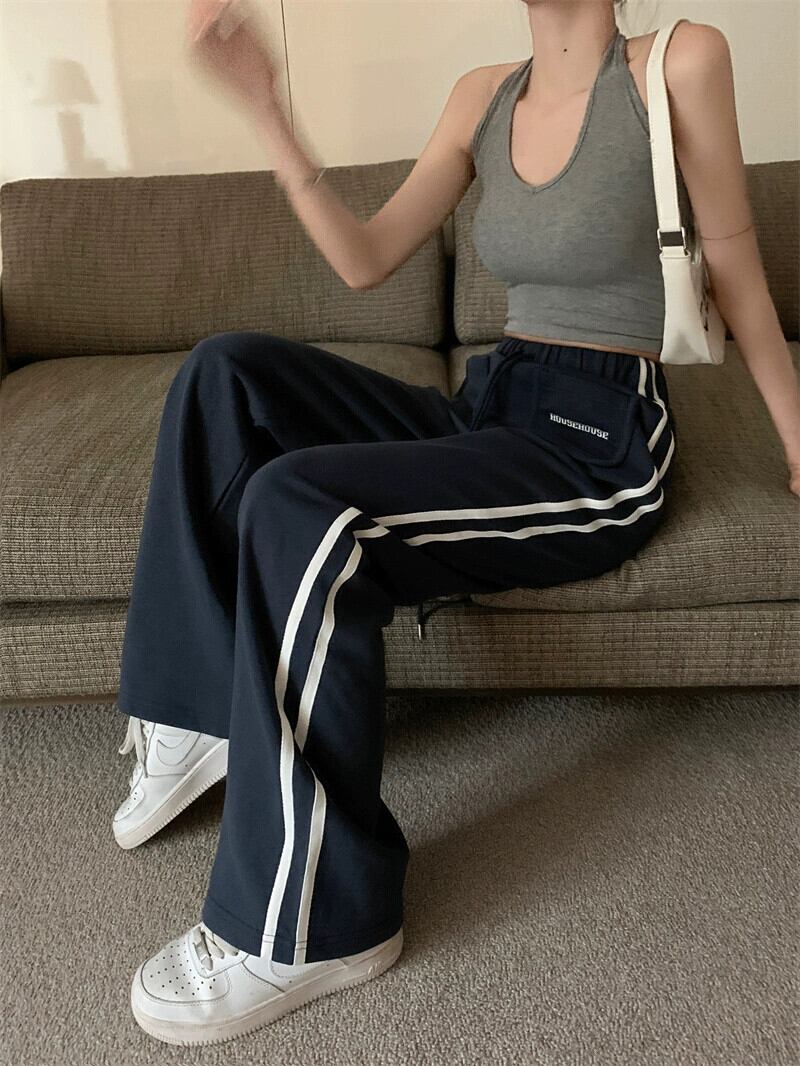 弾性ウエストスポーツパンツレディース夏アメリカンスタイルドローストリングスリミングストレートパンツルーズスモールワイドレッグモップパンツ エラスティック 伸縮 サマー 夏物 bstraw52956121874 | beaute25