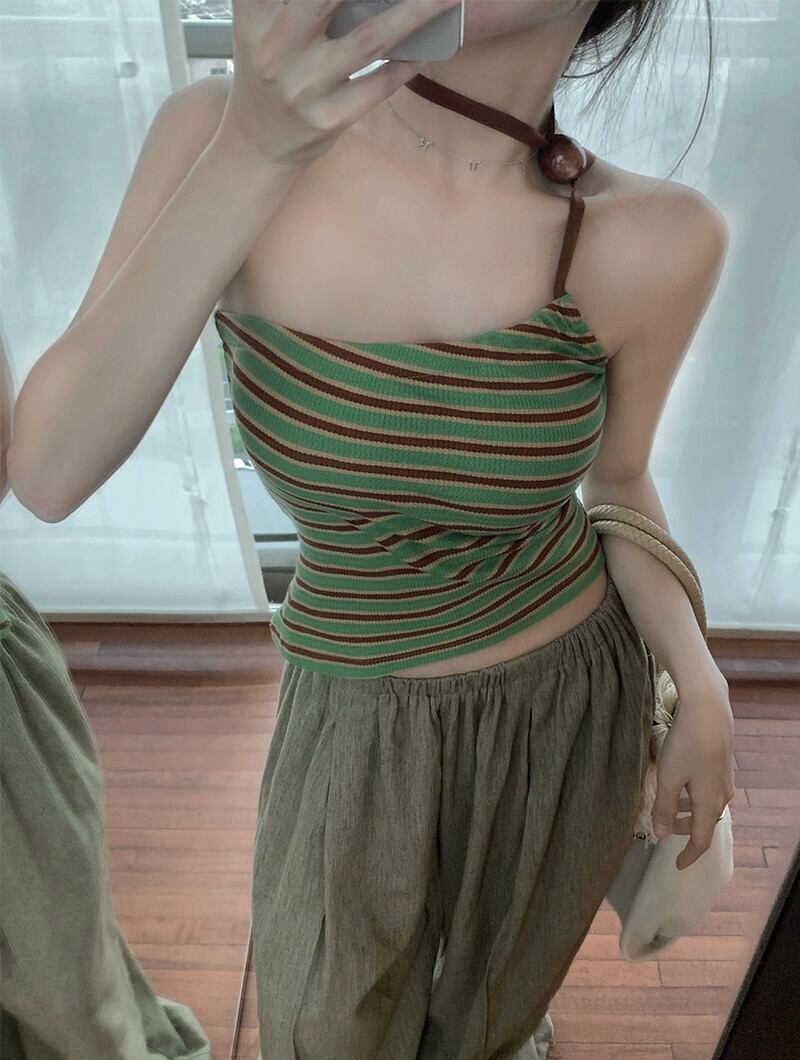 甘い不規則なホルターネックストライプ小さなキャミソール女性の夏のショートスタイルのアウターウェアホルターセクシーなインナートップ 大人ガーリー スウィート キュート カジュアル サマー 夏物 bstraw19065387571 | beaute25