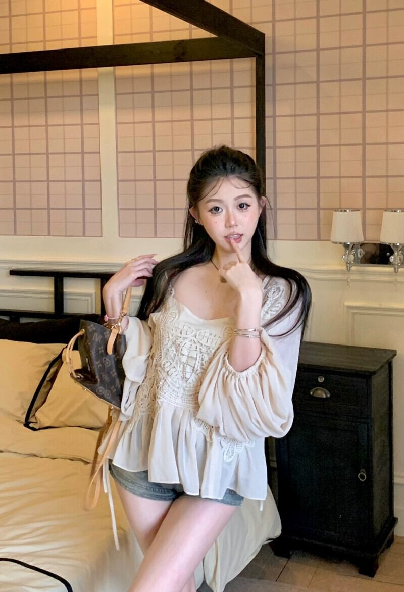 フレンチスクエアカラー長袖シフォンシャツ女性の夏重工業レースステッチシャツプルオーバーデザインセンスニッチトップ ロング サマー 夏物 スクウェア bstraw80983945132 | beaute25