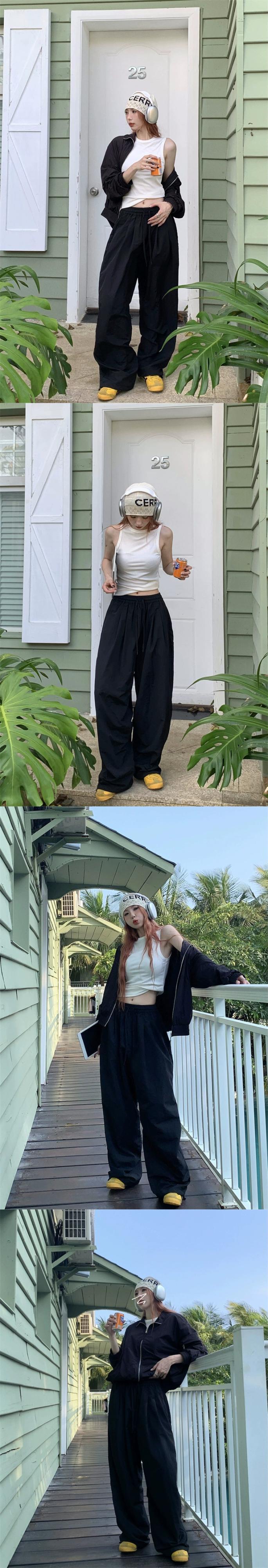 ホワイト巾着スポーツカジュアルパンツレディース夏アメリカンスタイルハイウエスト薄セクション小さな速乾性ワイドレッグパンツズボン ハイウェスト サマー 夏物 bstraw21915110716 | beaute25