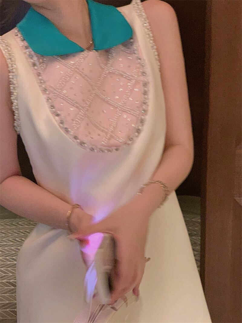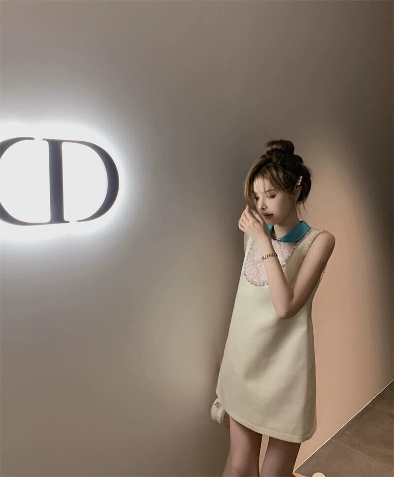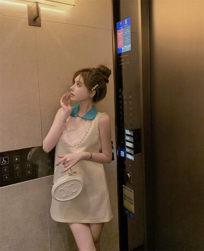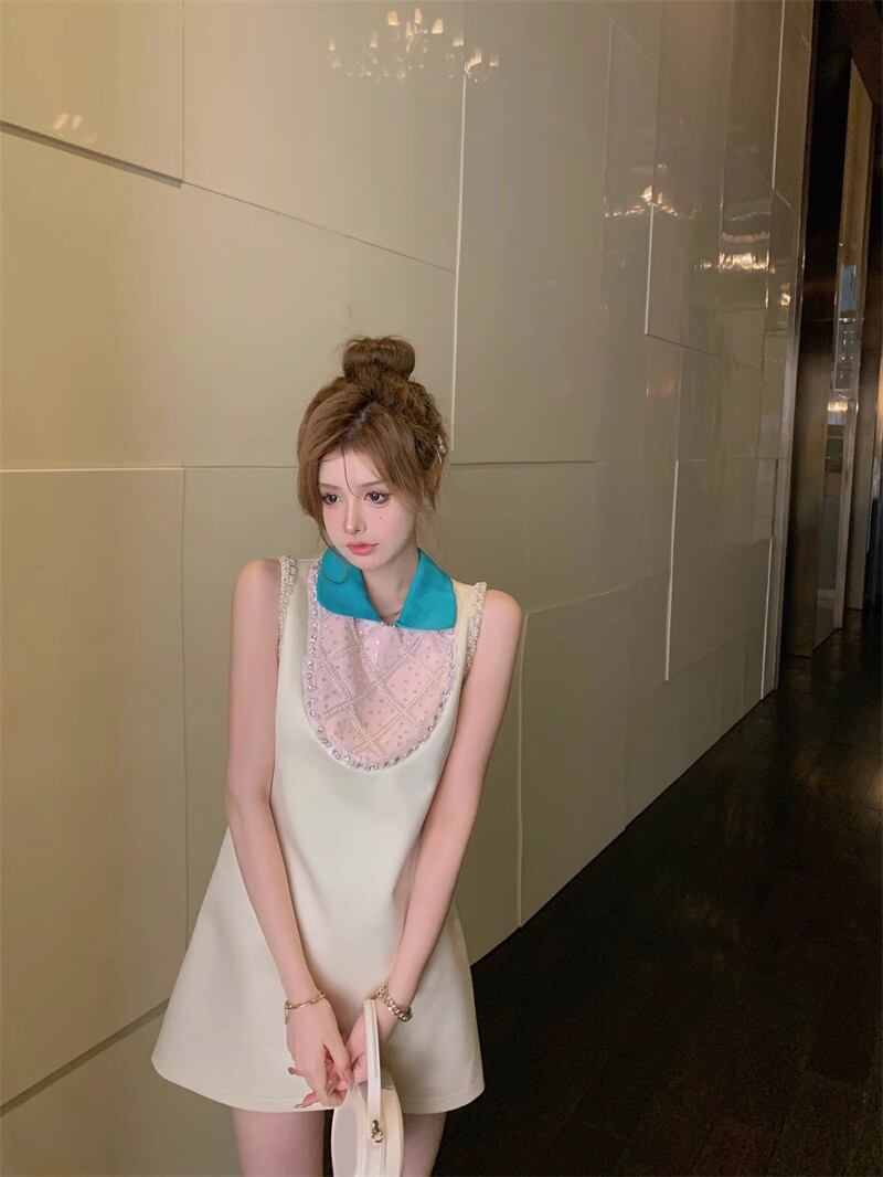 甘い人形の襟のベストドレス女性の夏のセレブスカートノースリーブスプライシング高品質の気質aラインスカート 大人ガーリー スウィート キュート カジュアル サマー 夏物 bstraw17285788369 | beaute25