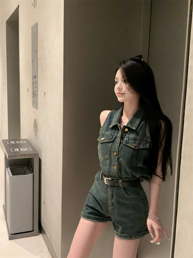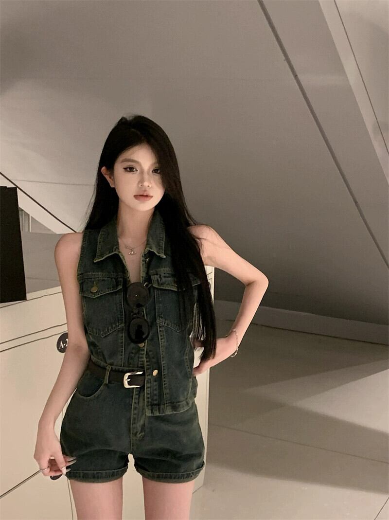 Sweet Cool Spice Girl キャミソール トップ レディース 夏 ツーピース パンツ プチウエスト デニム ショートパンツ セット 大人ガーリー スウィート キュート カジュアル サマー 夏物 ショーツ ブルマー bstraw24167740445 | beaute25