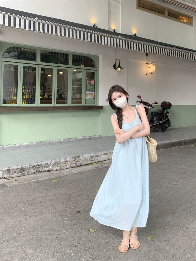 色:ライトブルーのサスペンダースカート