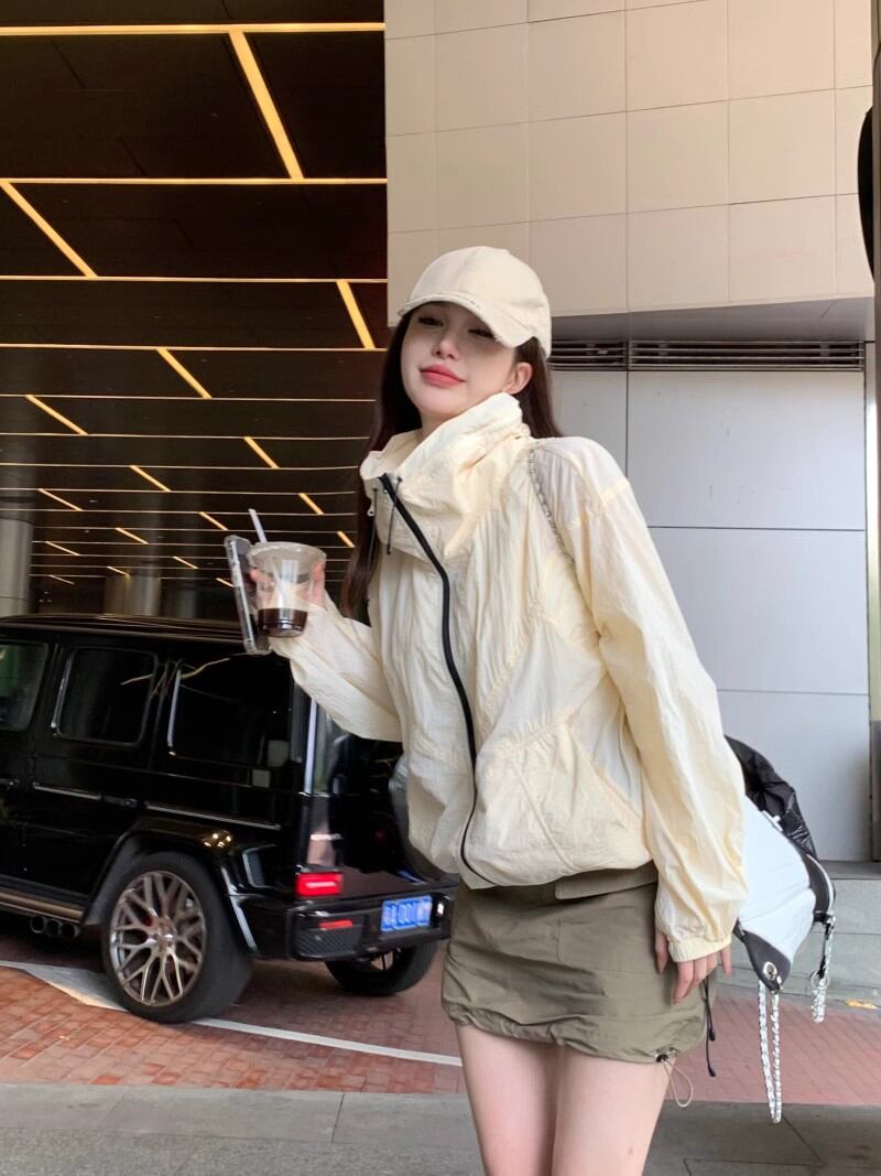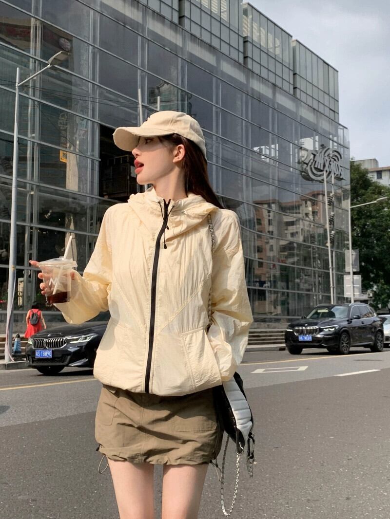 気質巾着ジャケット フード付きジャケット レディース 夏 長袖 日焼け止め カーディガン ルーズ 薄手 セクション ジッパー トップ アウター ロング サマー 夏物 bstraw77069986383 | beaute25