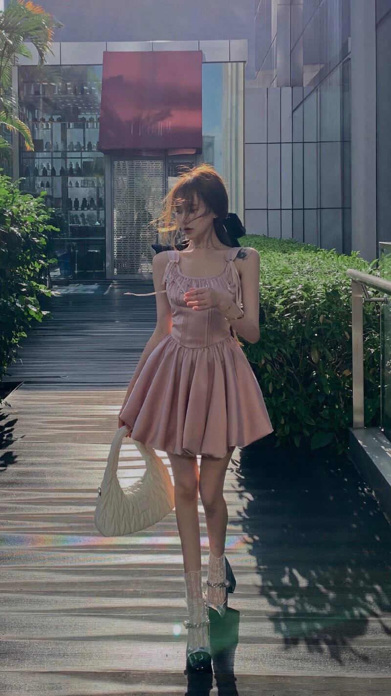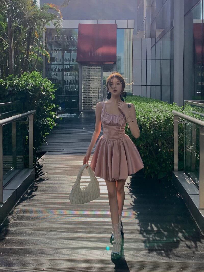 ピンクのサテンのスリングドレス女性の夏の純粋な欲望風ネクタイ弓重工業ダイヤモンドスカート花のつぼみスカート リボン サマー 夏物 ピュア フラワーデザイン bstraw5761239482 | beaute25