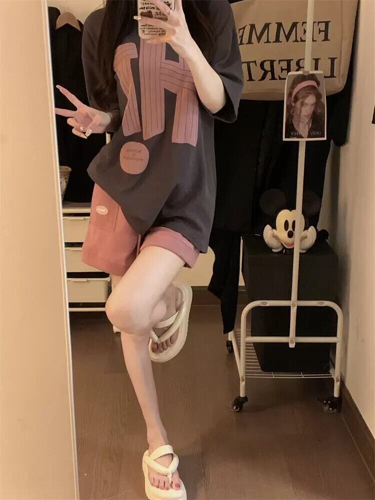 色:ピンクのショートパンツ,黒のショートパンツ,グレーのTシャツ