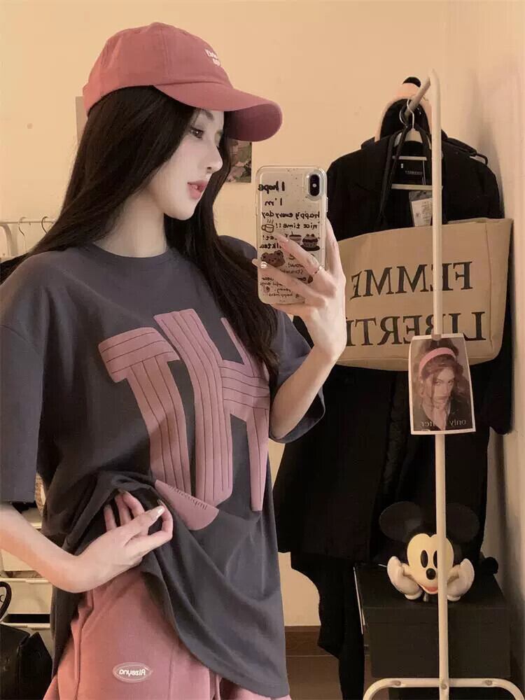 ミドル丈ルーズレタープリント半袖トップスレディース夏アメリカンスタイル薄手ラウンドネックオールマッチカジュアルTシャツ サマー 夏物 Oネック bstraw72950484392 | beaute25