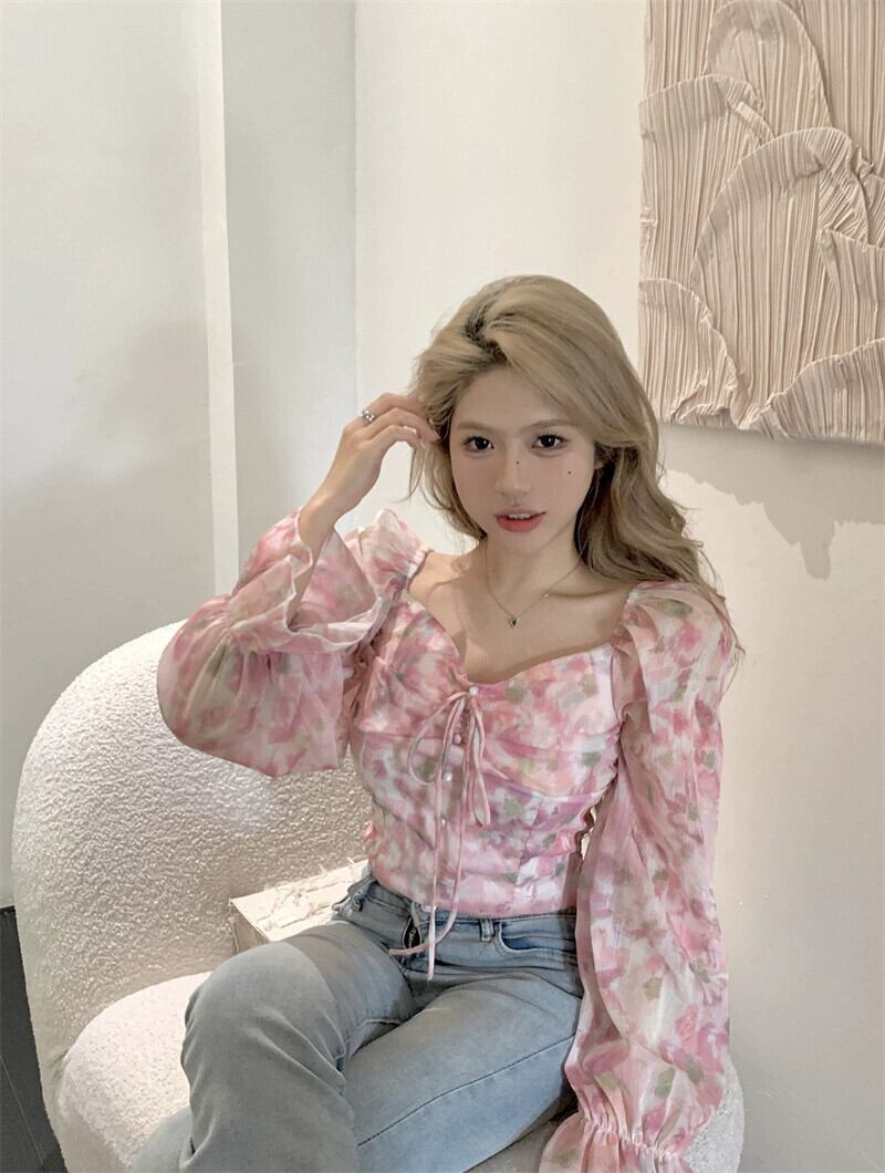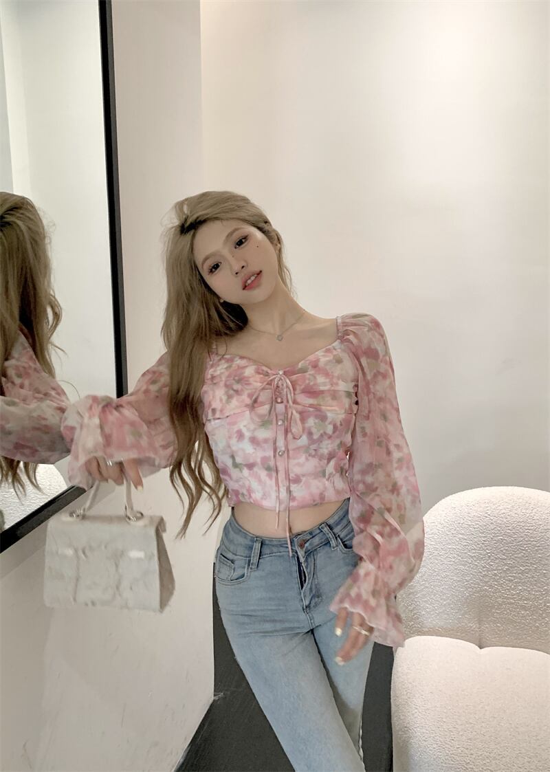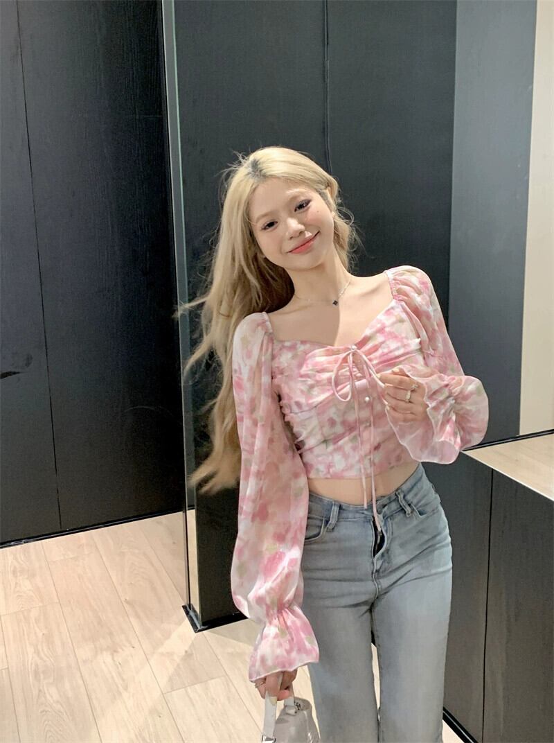 フレンチスクエアカラー長袖シフォンシャツレディース2023夏新作タイダイネクタイショートデザインセンスニッチトップ ロング サマー 夏物 スクウェア bstraw27538858848 | beaute25