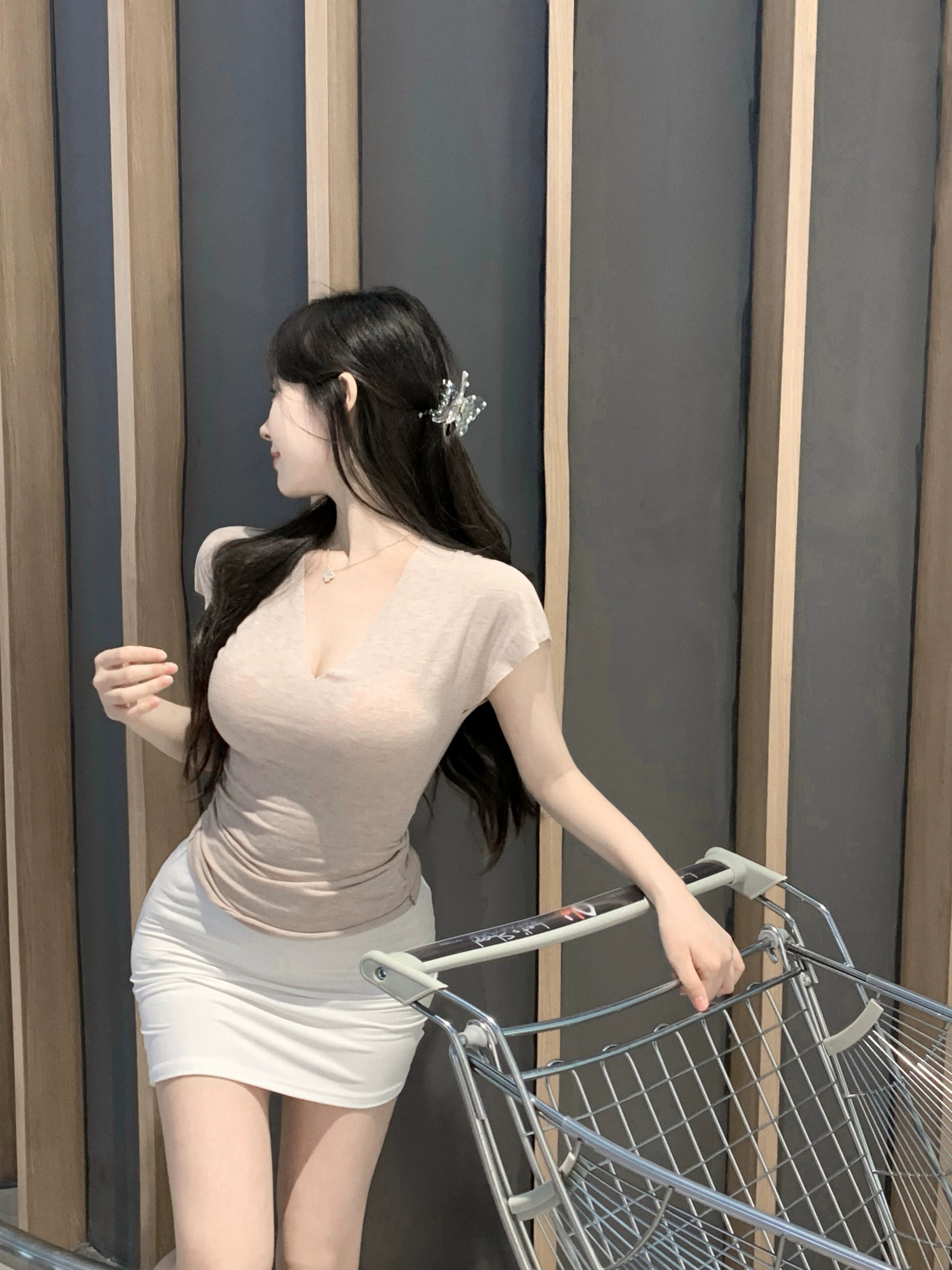 純粋な欲望スタイル v ネック半袖ニット tシャツ女性の夏のセクシーなタイトなソリッドカラーのインナーウエストウエストボトリングシャツトップ サマー 夏物 Vネック bstraw26910321205 | beaute25