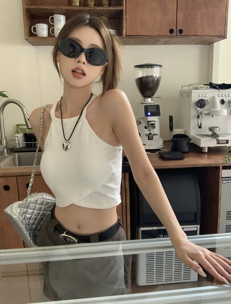 ホワイトキャミソール婦人服夏甘いクールスパイスガール純粋な欲望セクシーな掘り肩 I 字型ショートトップアウター 大人ガーリー スウィート キュート カジュアル サマー 夏物 ピュア bstraw9196011198 | beaute25