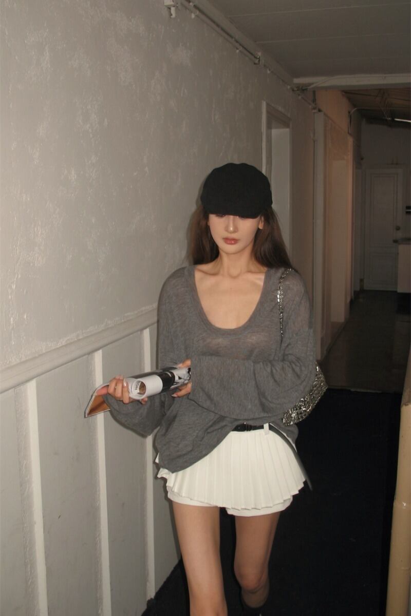 グレーの怠惰な長袖 T シャツのバージョンの女性の夏薄部ルーズ日焼け止めブラウス デザイン センス ニッチ気質トップ ロング サマー 夏物 Tシャツ bstraw86665717005 | beaute25