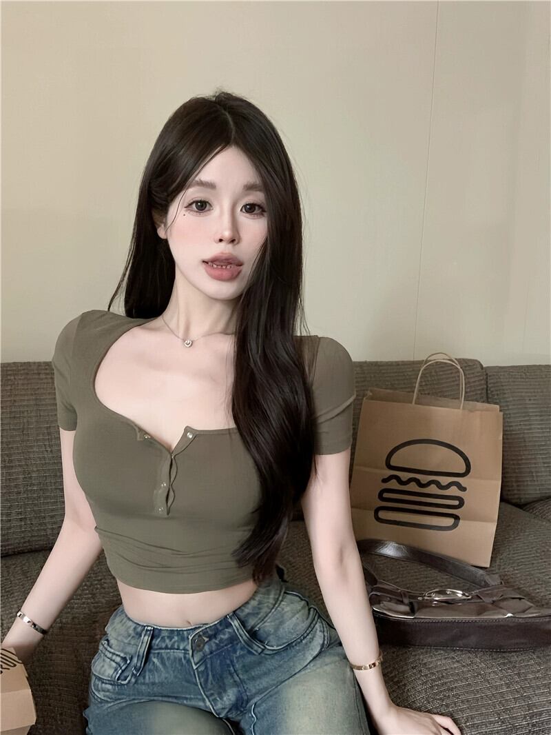 純粋な欲望スタイルブルーモーダルニットフロントショルダー半袖 Tシャツ女性の夏のショートセクション自己修養甘いクロップトップ 大人ガーリー スウィート キュート カジュアル サマー 夏物 bstraw75066247888 | beaute25
