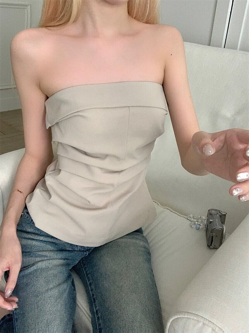 ホットストラップレスセクシーなチューブトップベスト女性の夏の純粋な欲望風ウエストインナーボトミングシャツショートトップアウター サマー 夏物 ピュア bstraw30065567256 | beaute25