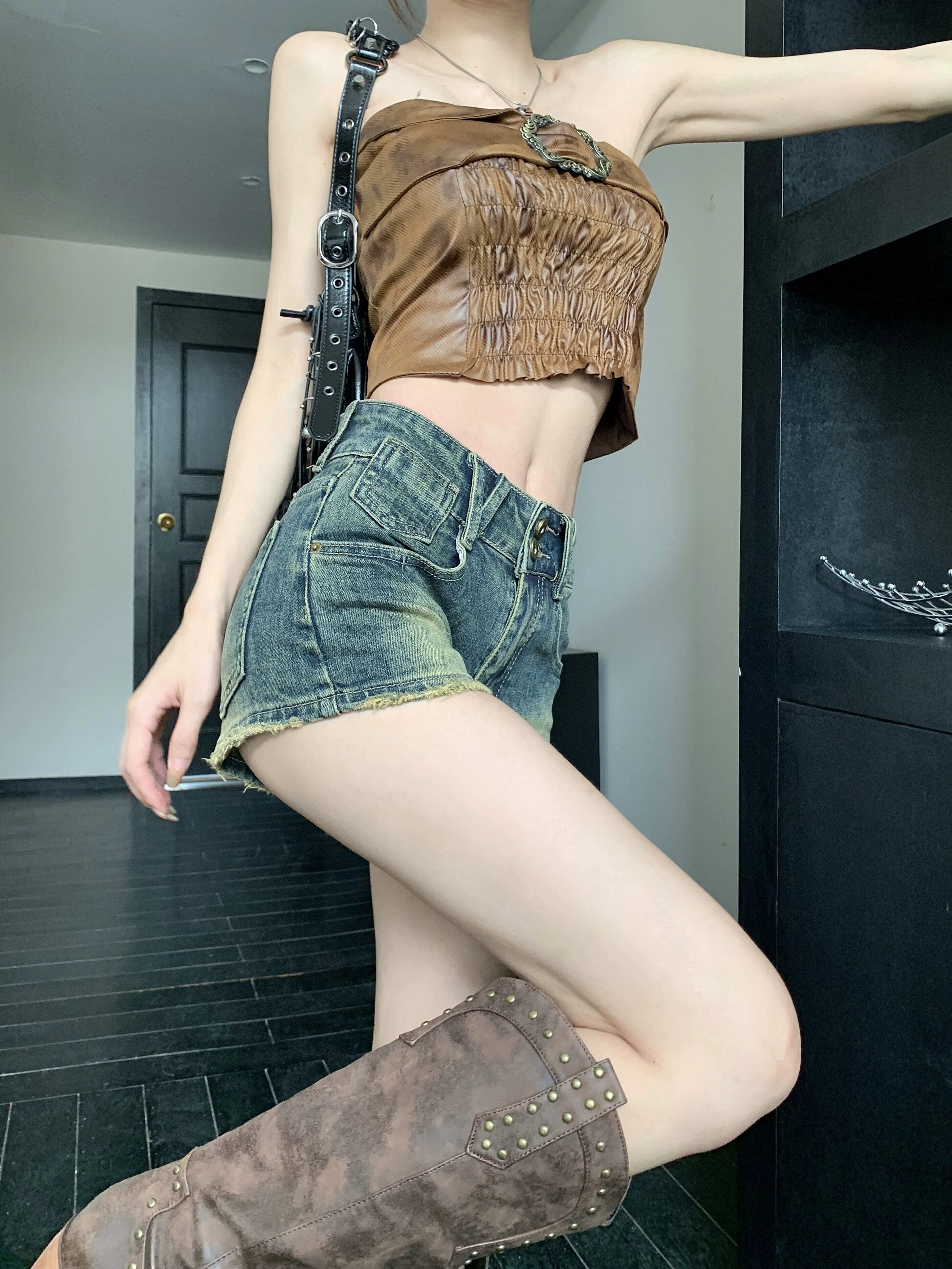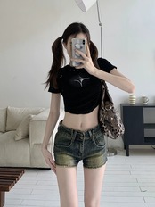 アメリカンレトロウォッシュジーンズレディースサマースリムパンツハイウエストスリムウルトラショーツニッチAラインパンツ ハイウェスト 夏物 ブルマー bstraw22979008493 | beaute25
