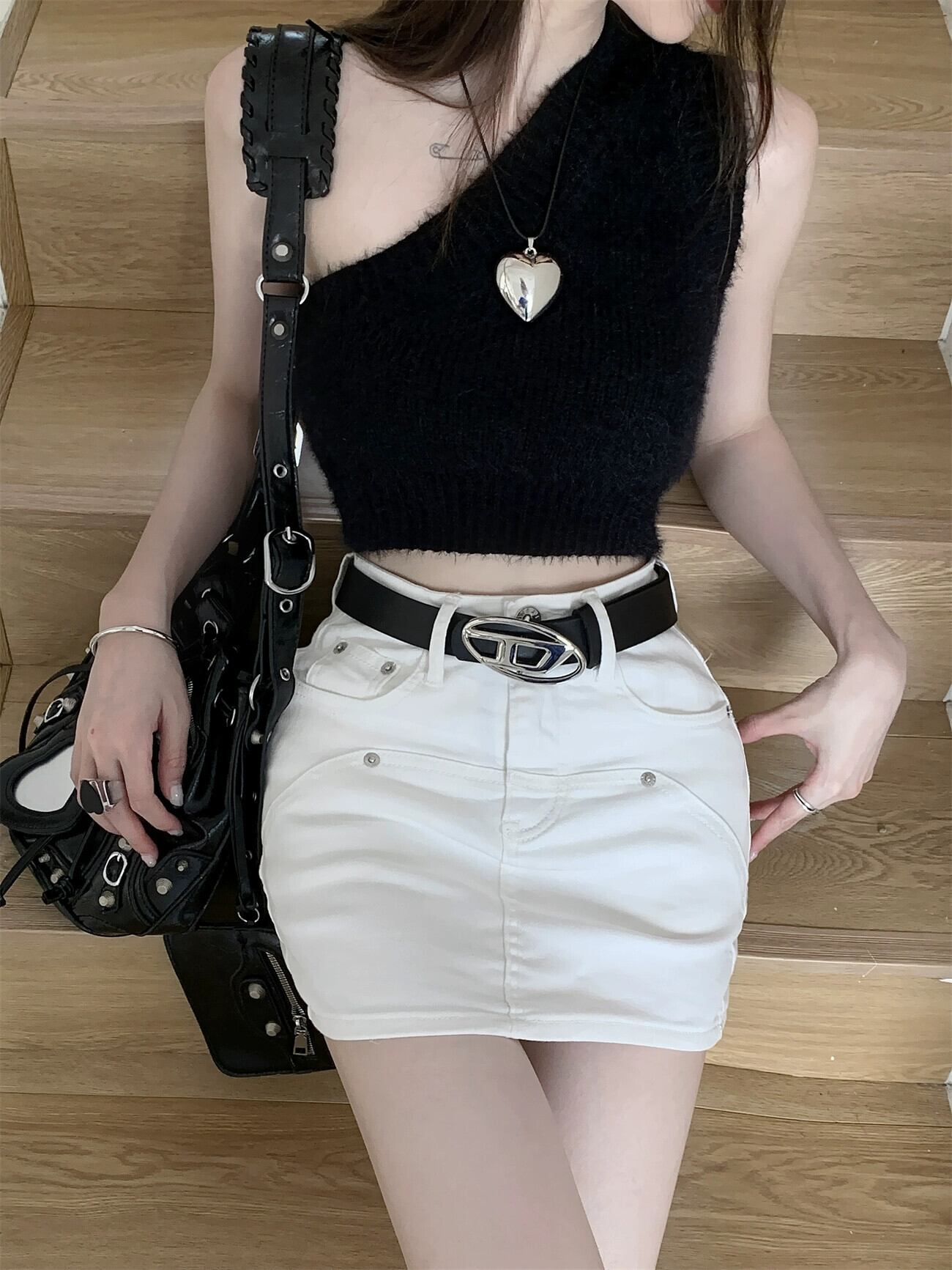 アメリカンレトロホワイトデニムスカート女性の夏の小さなスカートパンツハイウエストスリムaラインスカート女の子スカート ハイウェスト サマー 夏物 bstraw53732928217 | beaute25