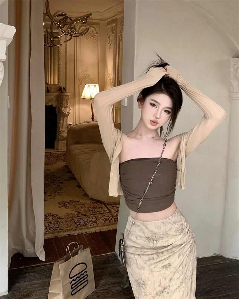 ホットチューブトップトップ女性のハイウエストプリーツスカートスリーピース夏薄部日焼け止めカーディガン新しい中国のスーツ ハイウェスト サマー 夏物 bstraw87487329430 | beaute25