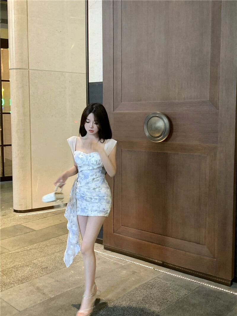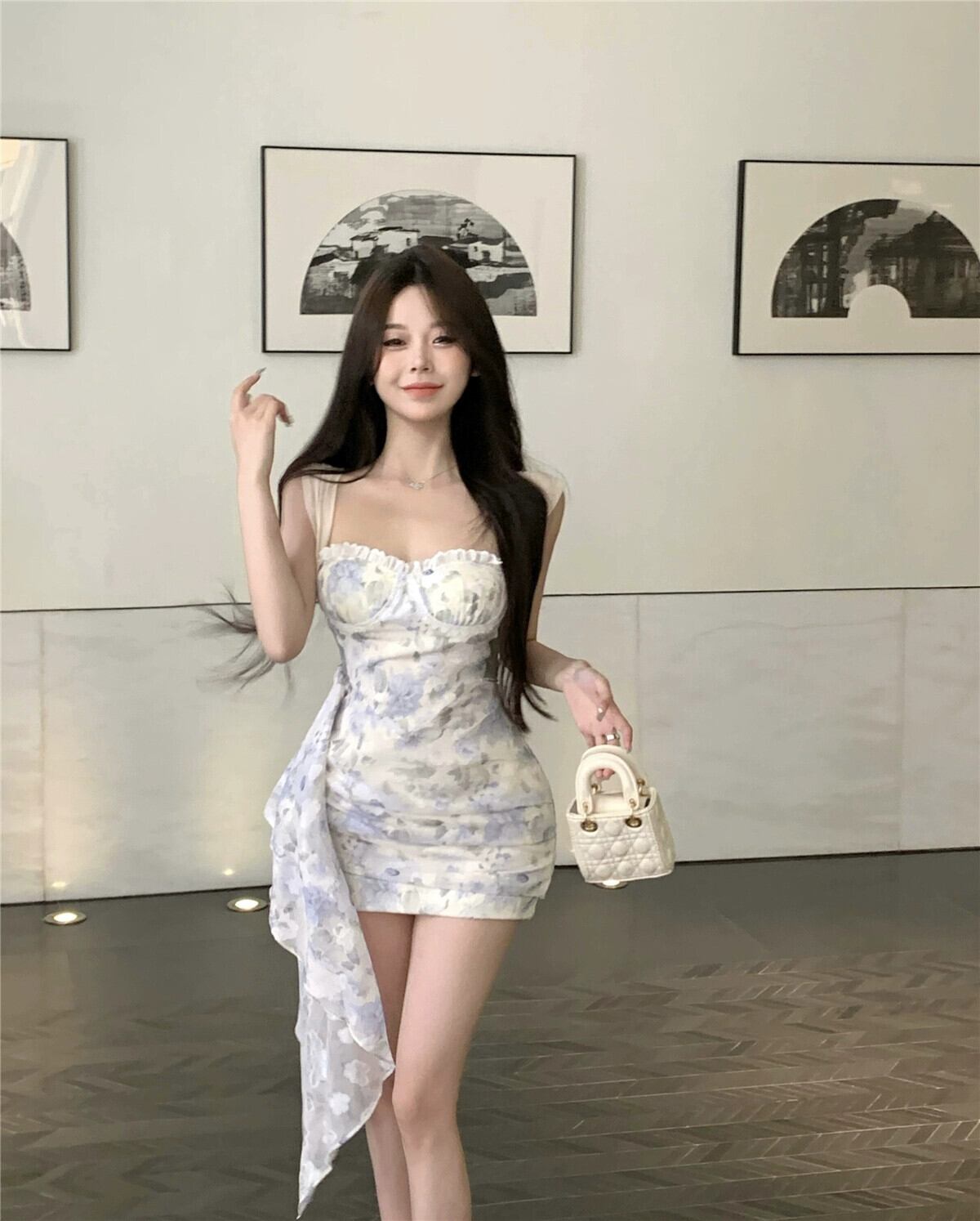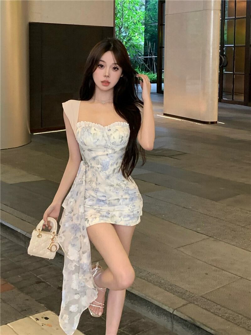 ウエストスリムベストドレスレディース夏プリーツスクエアカラーセクシーパッケージヒップスカートブルーフローラルAラインスカート サマー 夏物 花柄 スクウェア bstraw44926567550 | beaute25