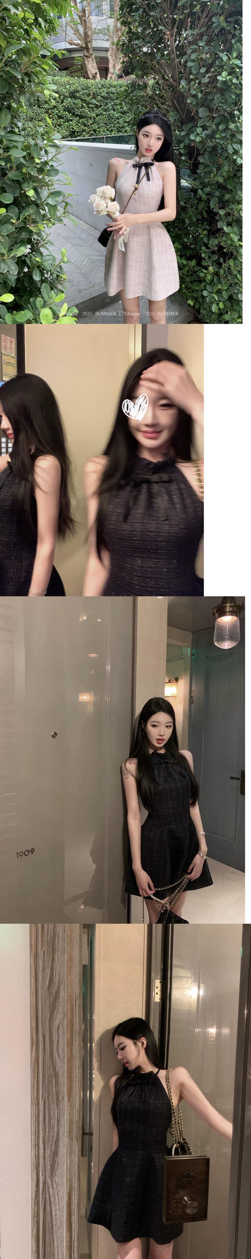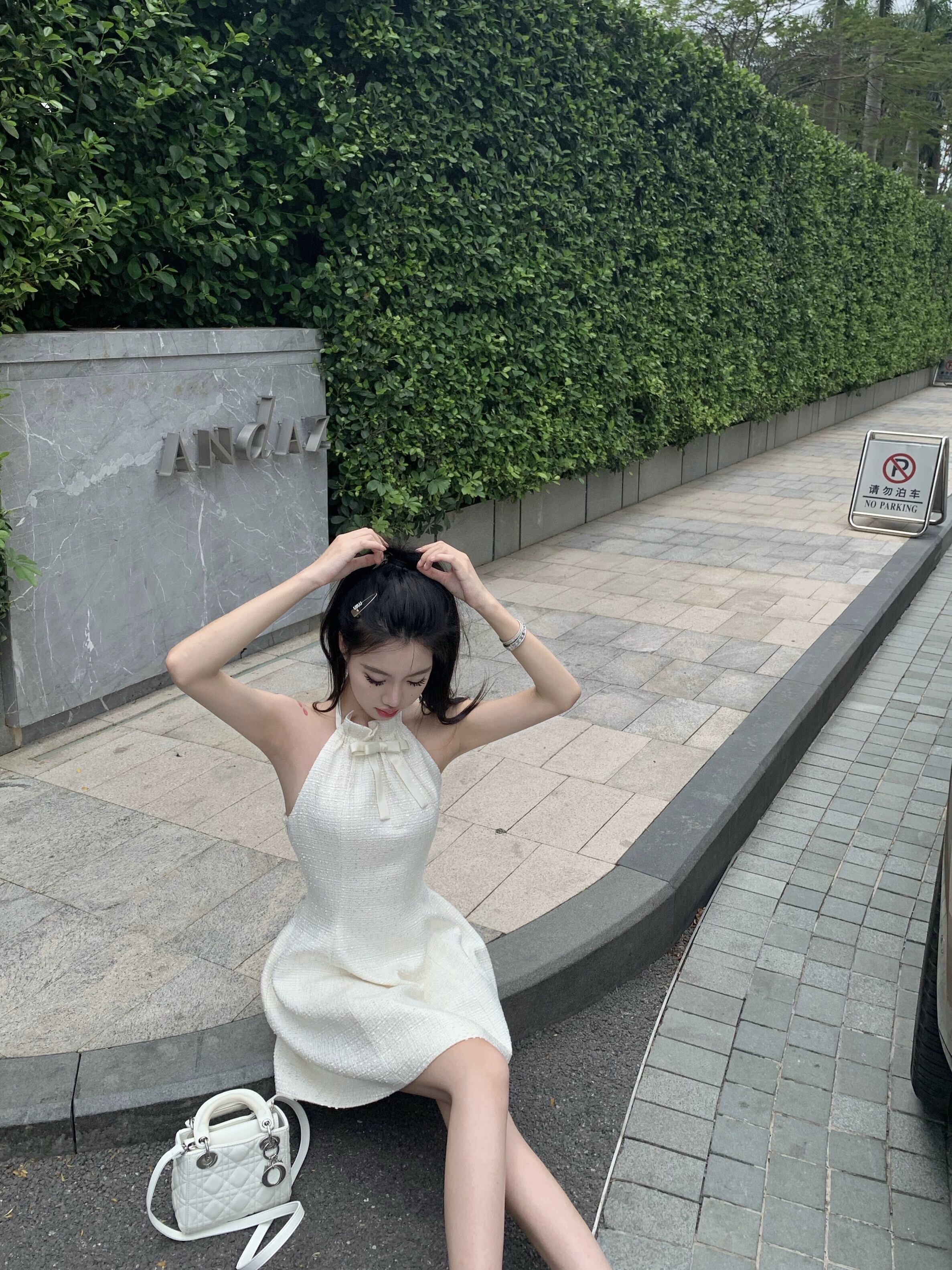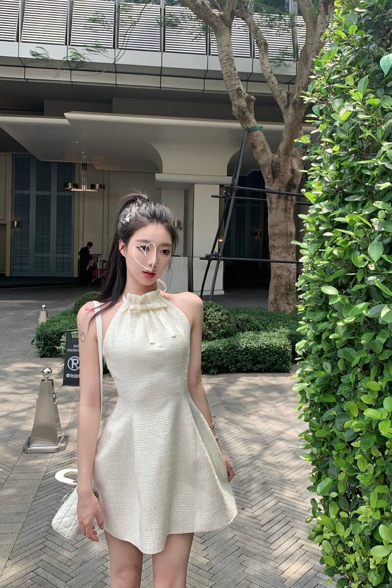 裕福な家族の娘 Xiaoxiangfeng ドレス女性の夏ストラップちょう結びハンギングネックサスペンダースカートオープンバック A ラインスカート リボン サマー 夏物 Aライン bstraw77123006477 | beaute25