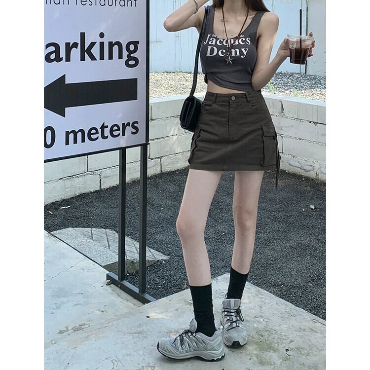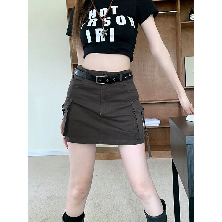 アメリカンスタイルのハイウエストツーリングポケット半身カジュアルショートスカート女性の夏スリムで小さな裏地付きaラインスカート ハイウェスト サマー 夏物 bstraw83535198244 | beaute25