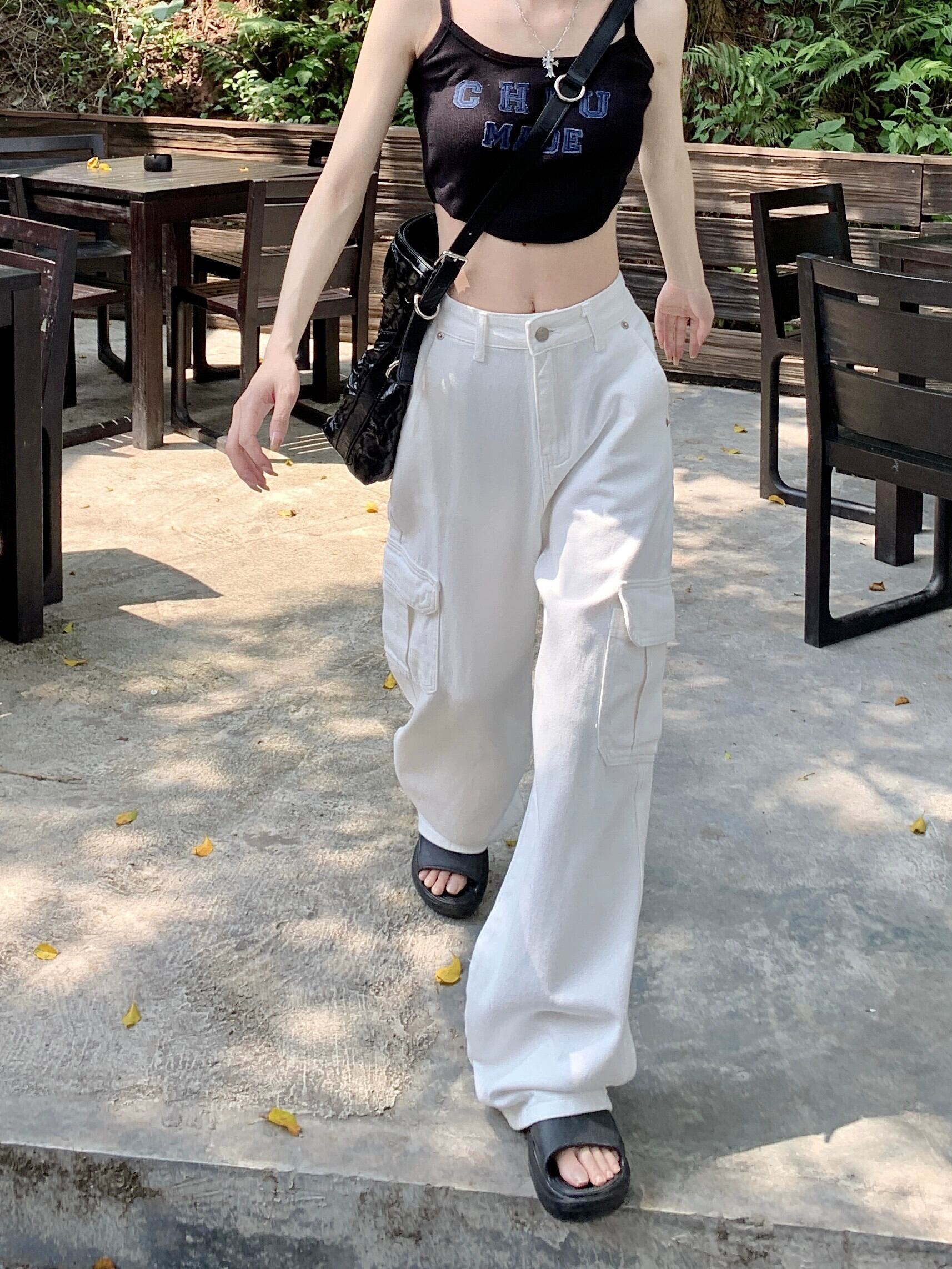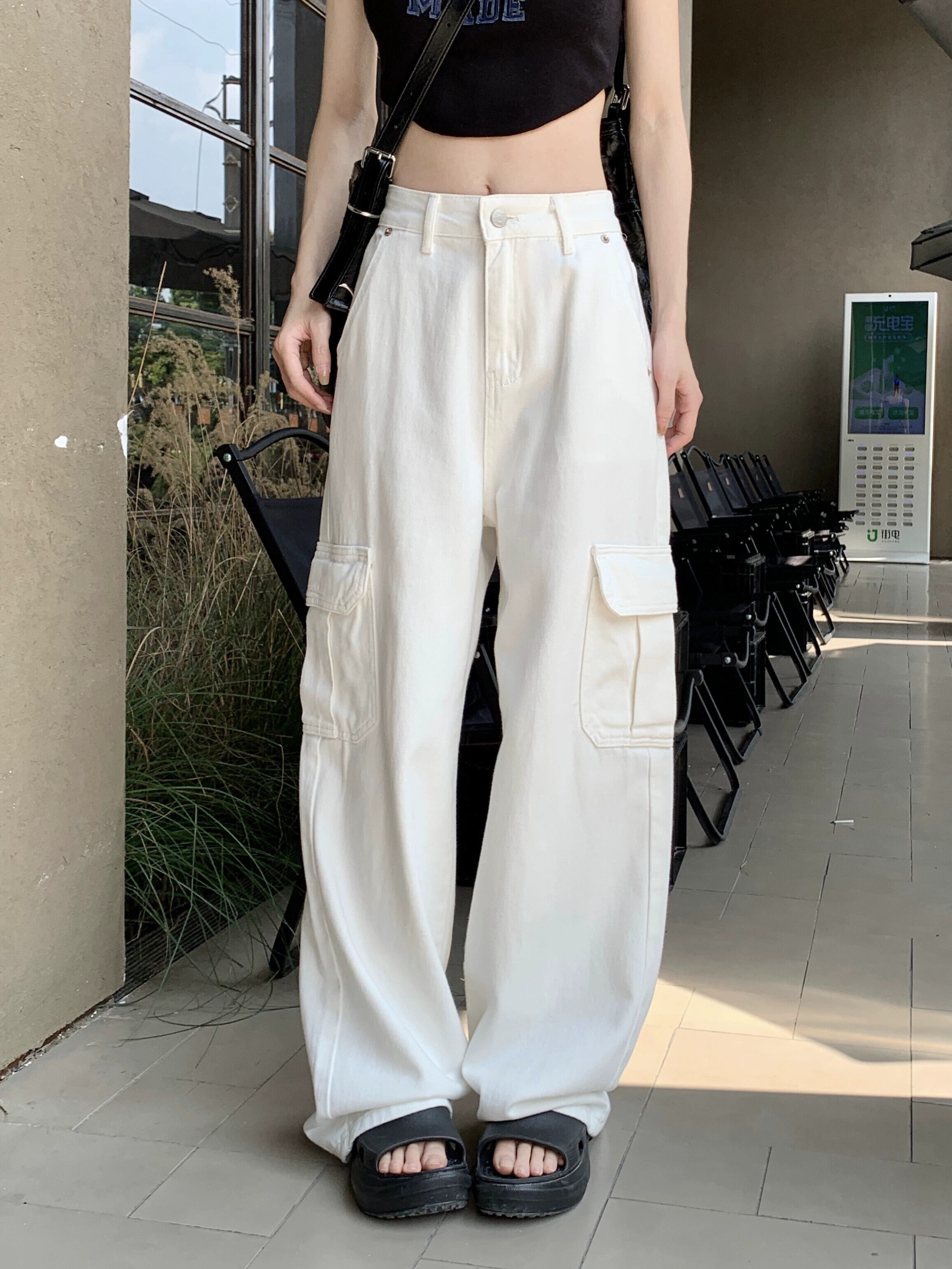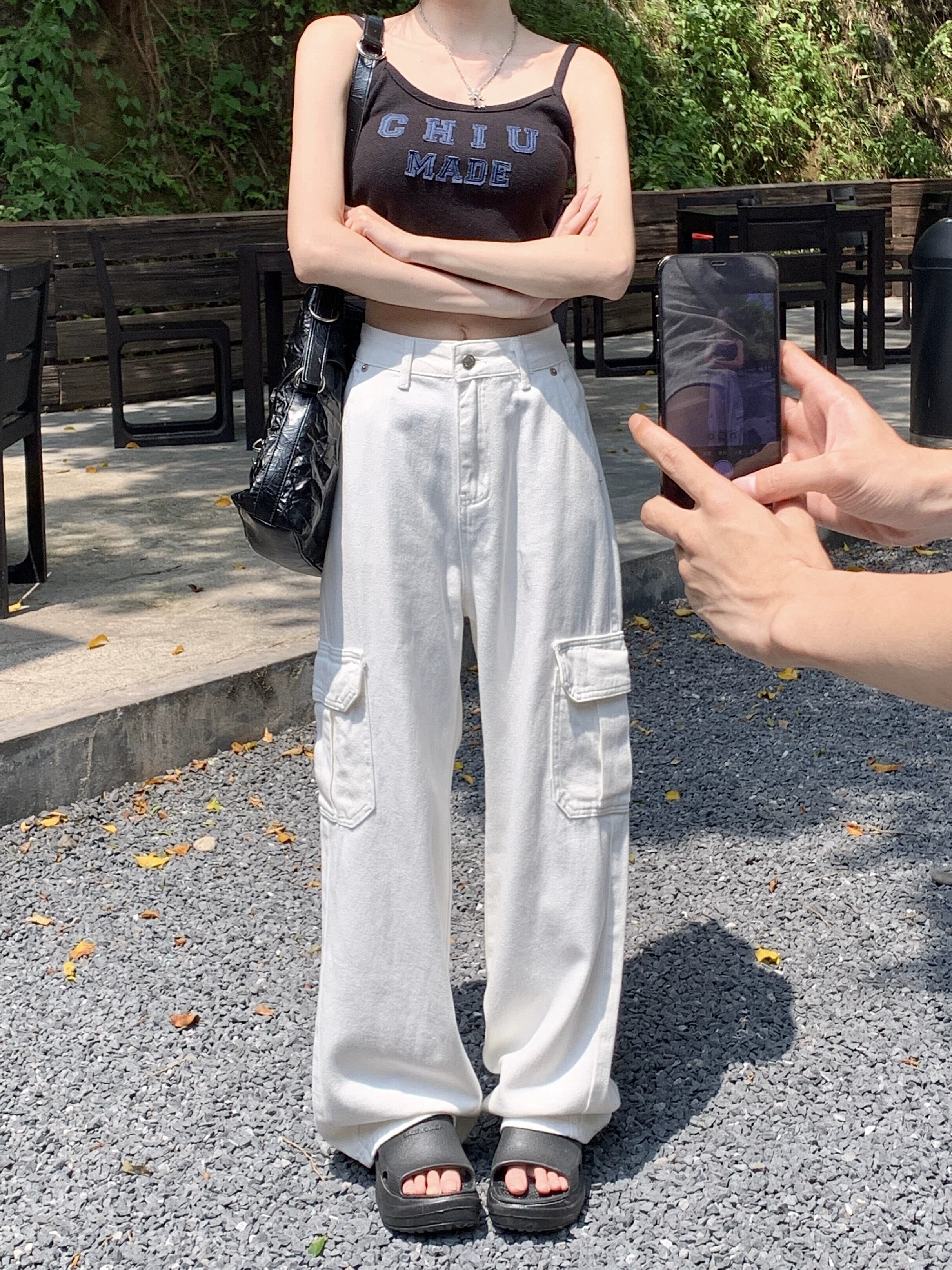 アメリカンツーリングホワイトナローストレートパンツレディース夏ハイウエストスリミングワイドレッグパンツレトロジーンズ ハイウェスト サマー 夏物 ワイドパンツ bstraw92952416107 | beaute25
