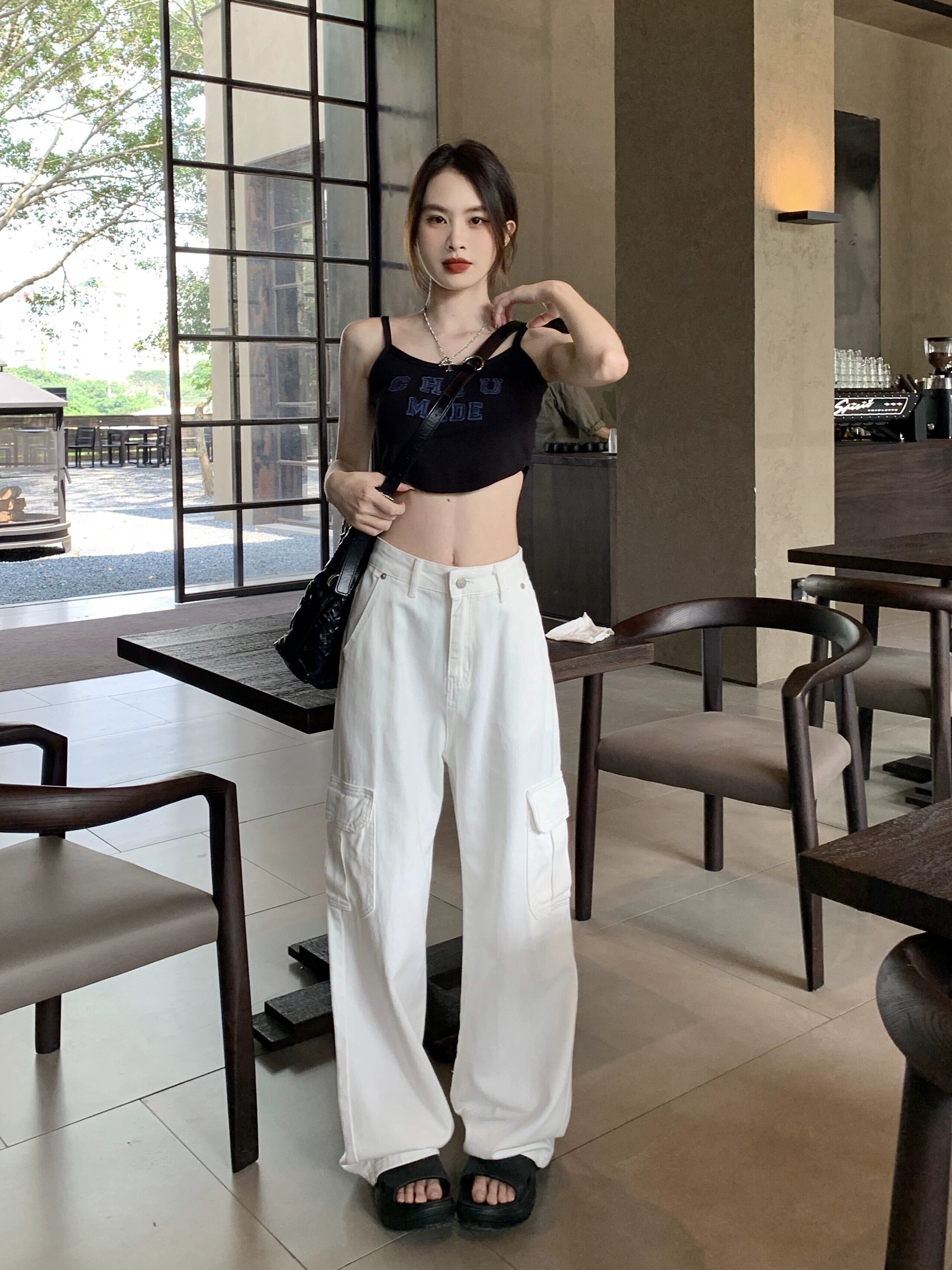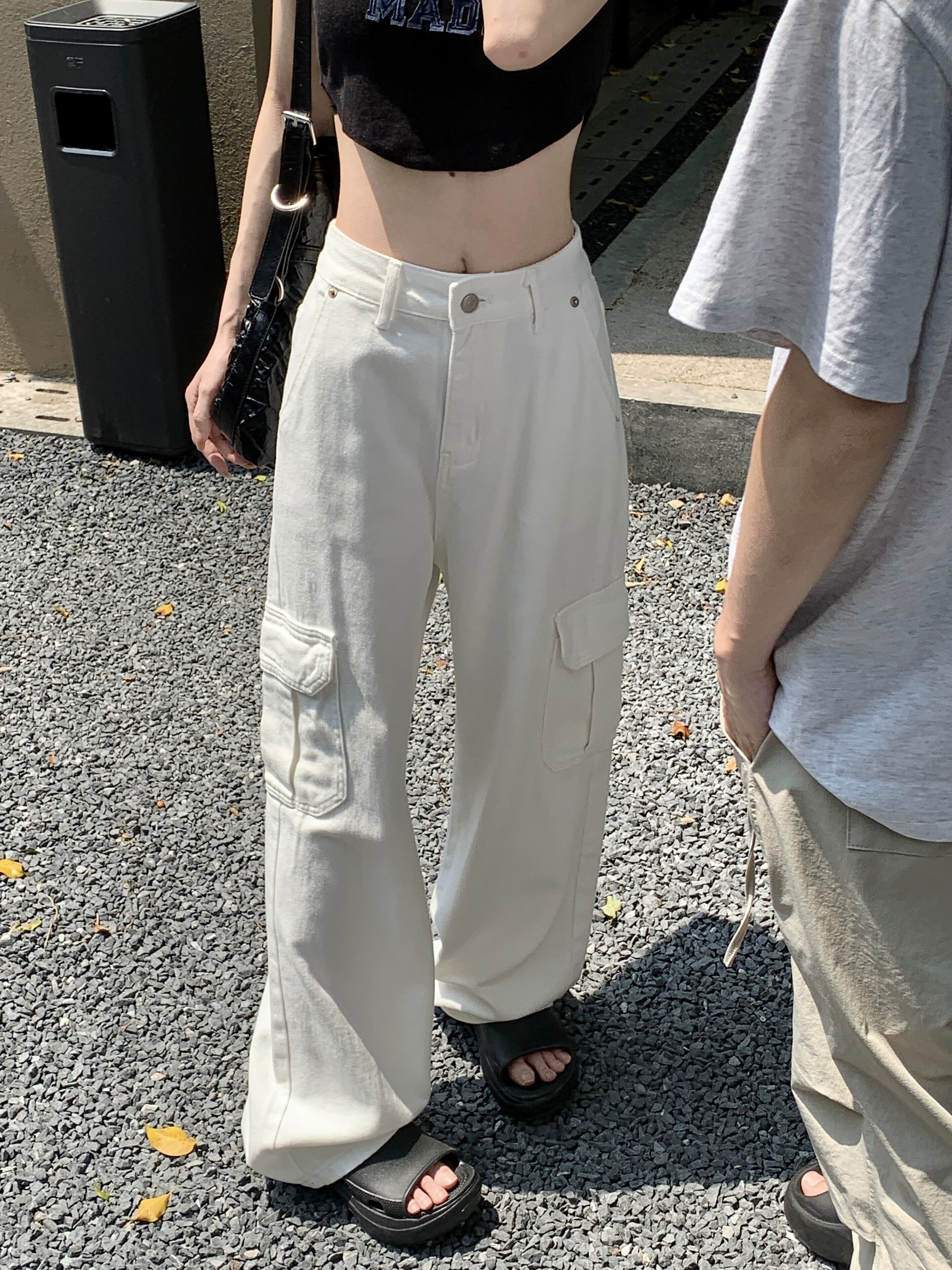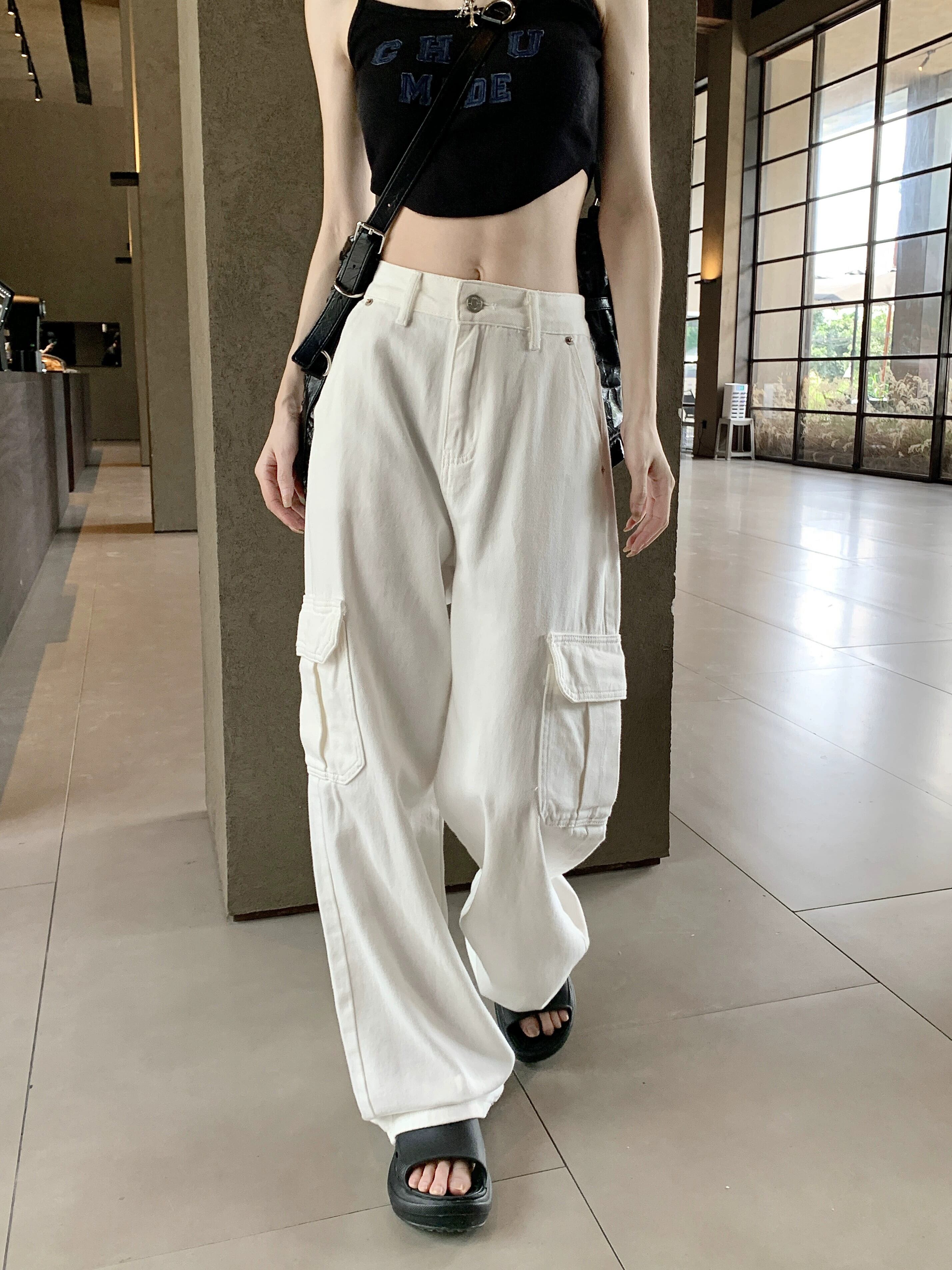 アメリカンツーリングホワイトナローストレートパンツレディース夏ハイウエストスリミングワイドレッグパンツレトロジーンズ ハイウェスト サマー 夏物 ワイドパンツ bstraw92952416107 | beaute25