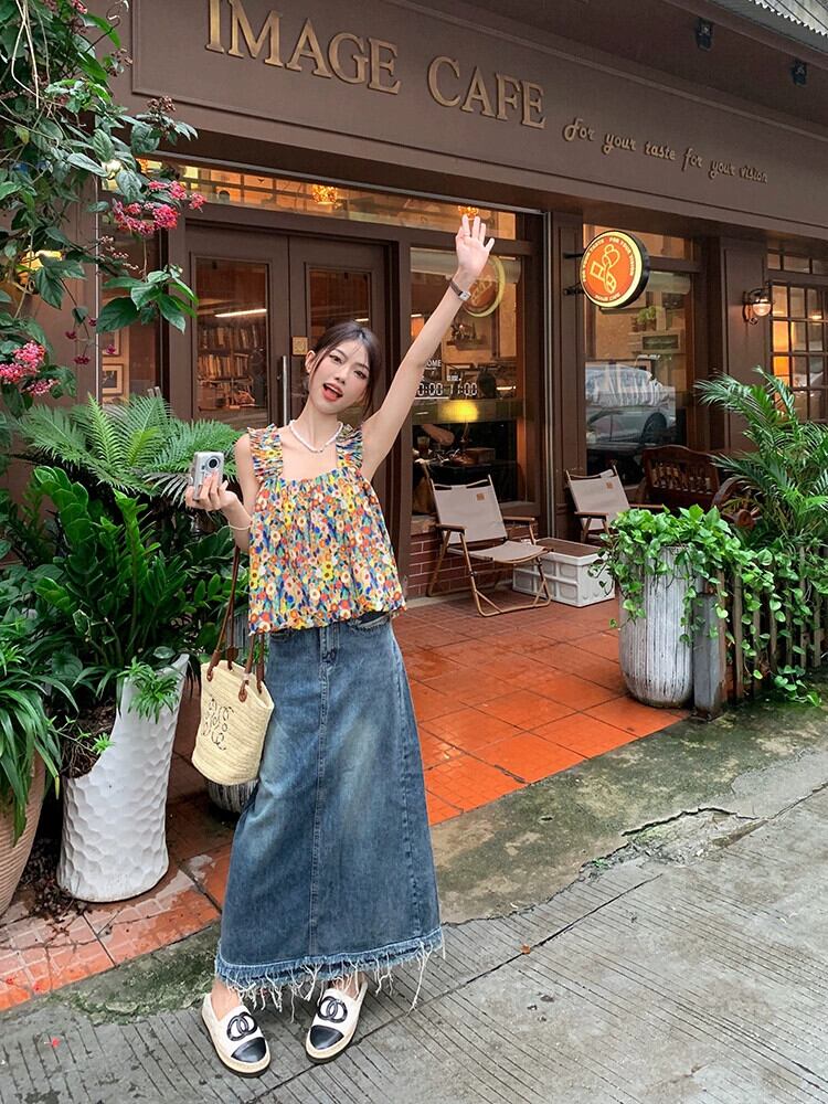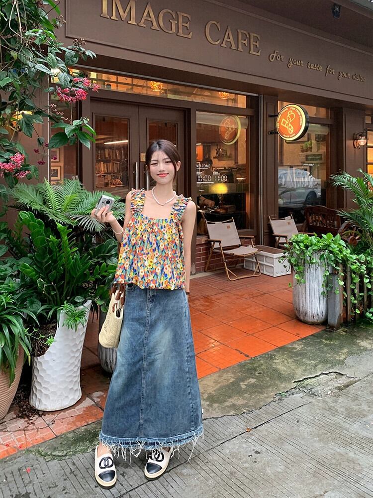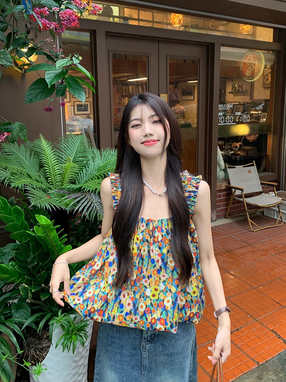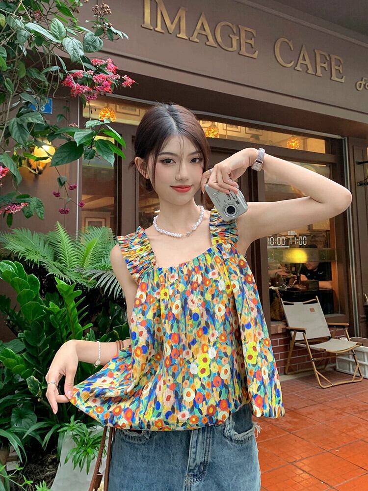 フレンチスイート油絵花柄キャミソールレディースサマードールシャツニッチショートセクション緩くて薄いトップアウター 大人ガーリー スウィート キュート カジュアル 夏物 bstraw71758601509 | beaute25