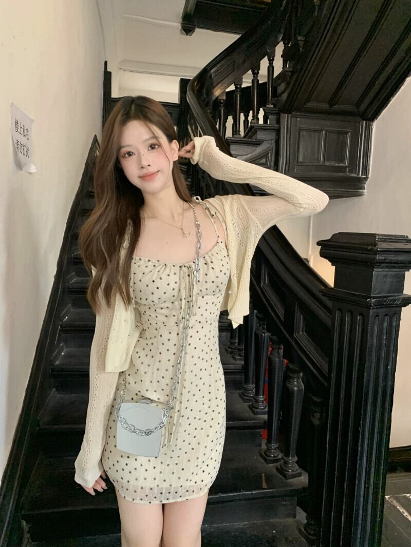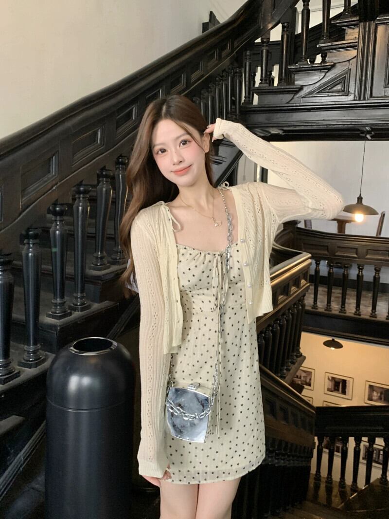 フレンチポルカドット休暇スタイルサスペンダードレス女性の夏のレース純粋な欲望バッグヒップスカート小さな甘いスカート 大人ガーリー スウィート キュート カジュアル サマー 夏物 ピュア bstraw14810190 | beaute25