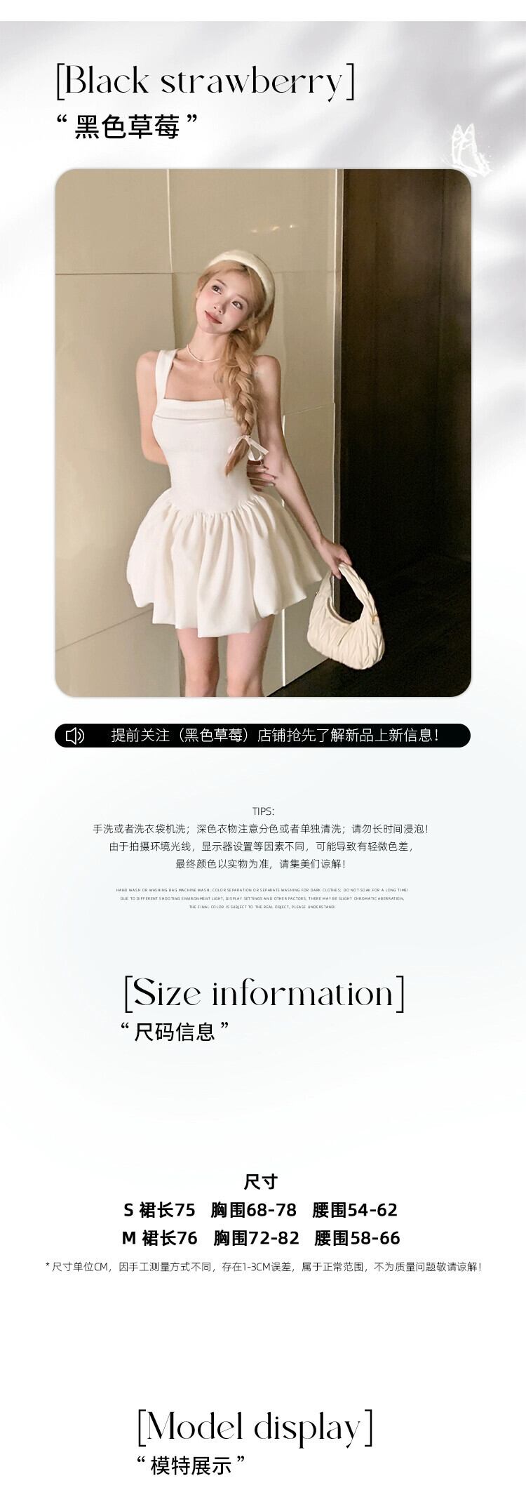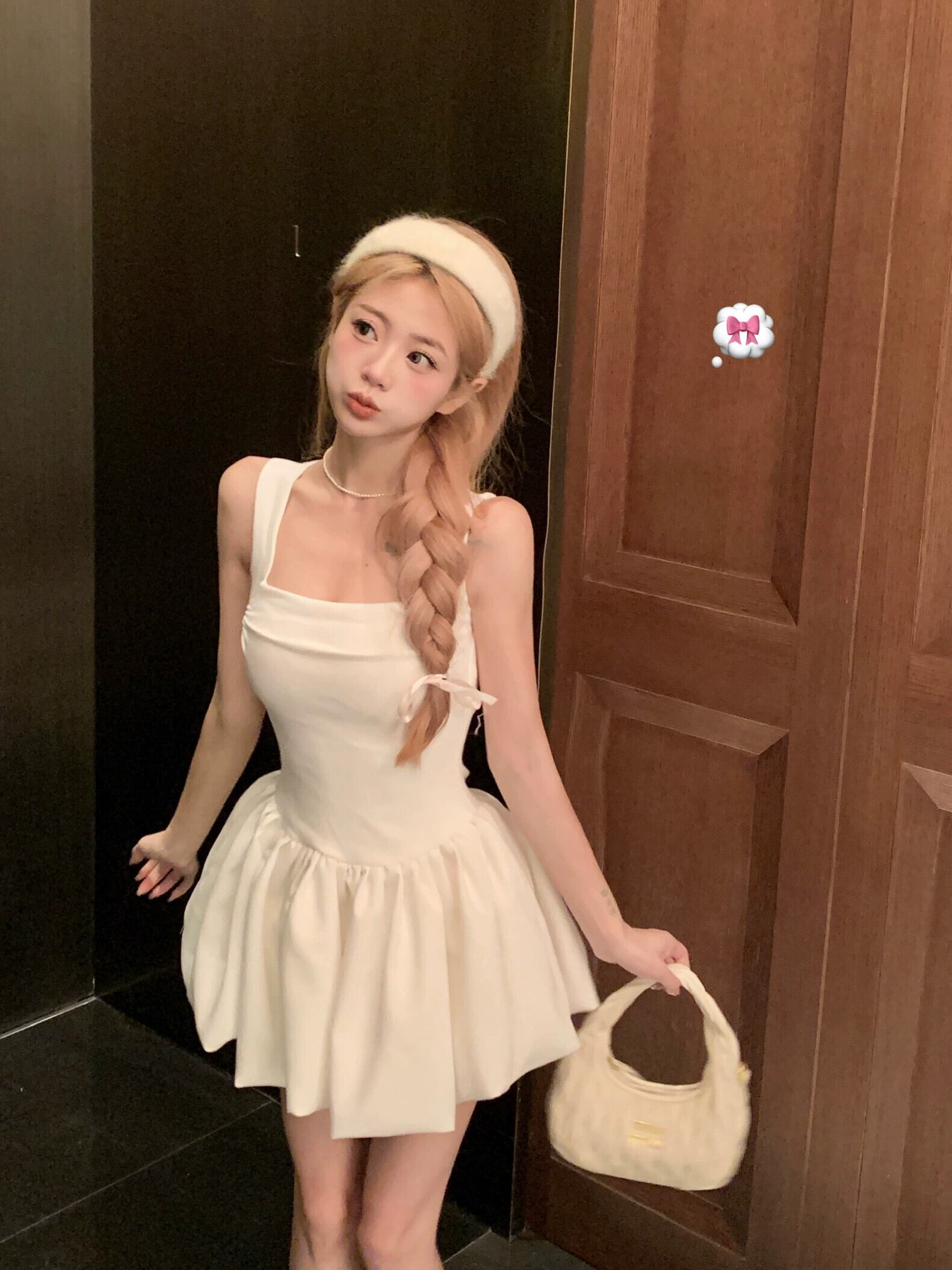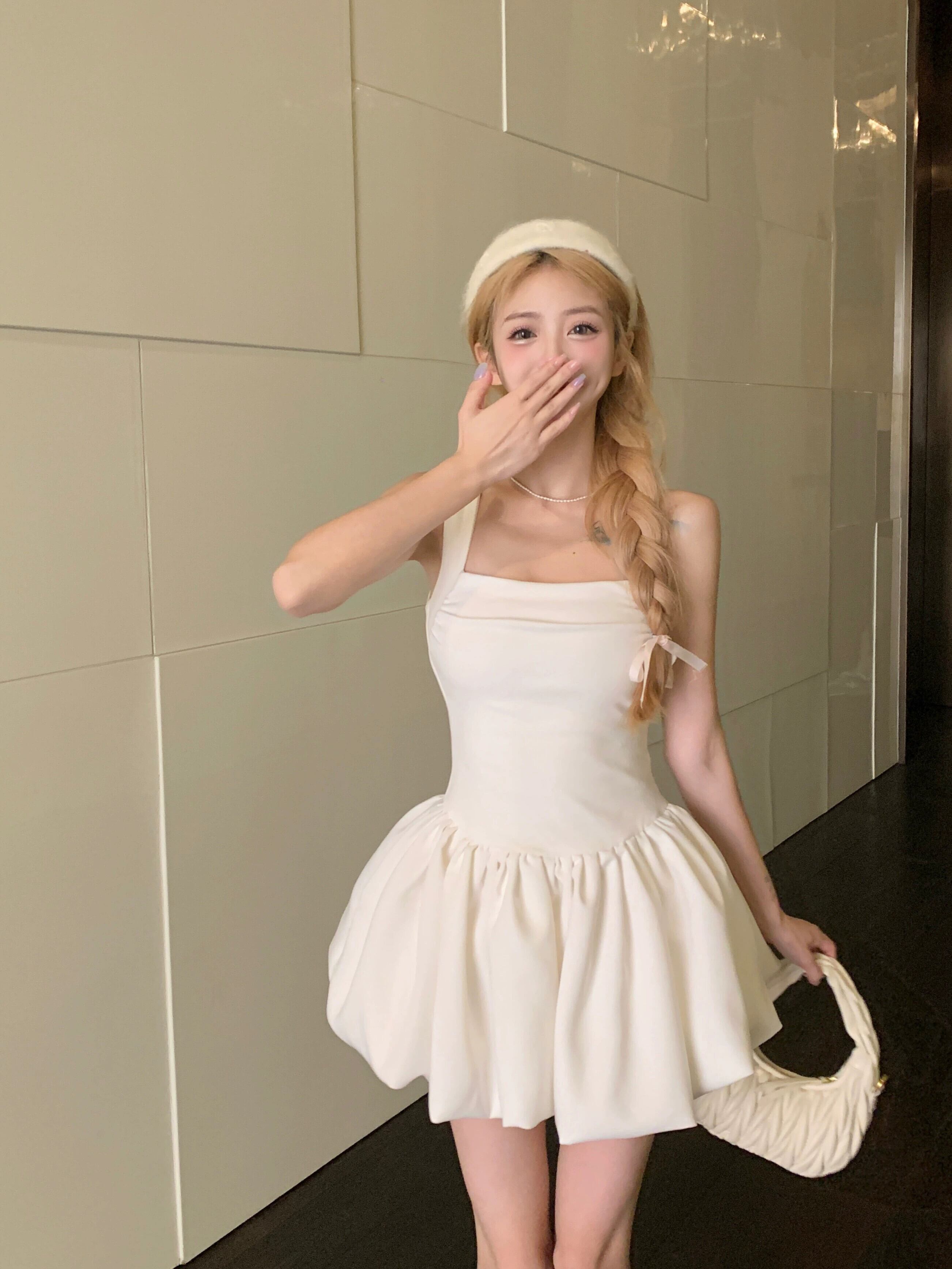 白いスリングドレス妖精夏甘い気質スカートウエストハイレベル感覚小さなふわふわスカート ホワイト 大人ガーリー スウィート キュート カジュアル サマー 夏物 bstraw68965231378 | beaute25
