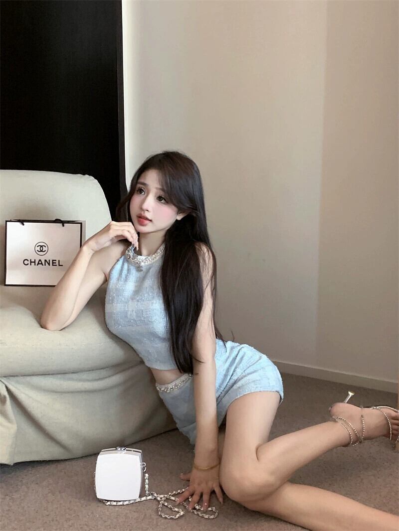 小さな香りの風スカート 2 点セット女性のノースリーブベストトップ夏のハイウエストバッグヒップスカート純粋な願望薄いスーツ ハイウェスト サマー 夏物 ピュア bstraw76795267691 | beaute25