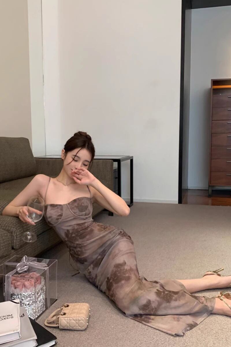 セクシーな絞り染めサスペンダードレス女性の夏の女の子バックスリットバッグヒップロングスカートマザースカートバッグヒップマーメイドスカート サマー 夏物 bstraw31620507076 | beaute25