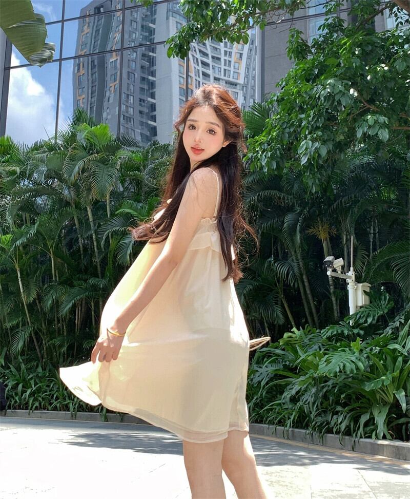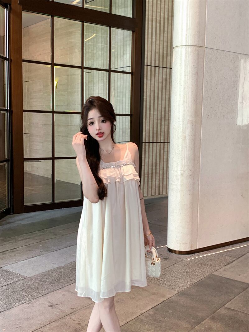 アプリコットサスペンダードレスの女性の夏の2023新しい甘いフリルスカート気質ハイエンドaラインスカート 大人ガーリー スウィート キュート カジュアル サマー 夏物 bstraw89700026248 | beaute25