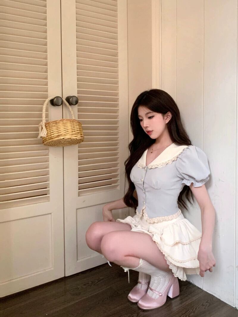 スイートスモールスーツ半袖シャツトップ女性夏スカートふわふわスカートスカート2点セット 大人ガーリー スウィート キュート カジュアル サマー 夏物 bstraw91678053609 | beaute25