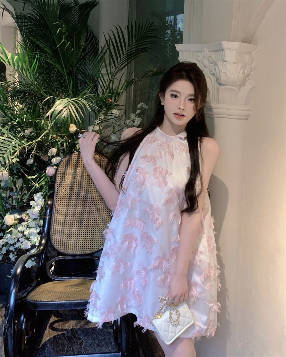 フランスの優しいスタイルのピンクの吊りネックベストドレス女性の夏のノースリーブストラップ緩い気質甘いショートスカート 大人ガーリー スウィート キュート カジュアル サマー 夏物 bstraw12911813942 | beaute25