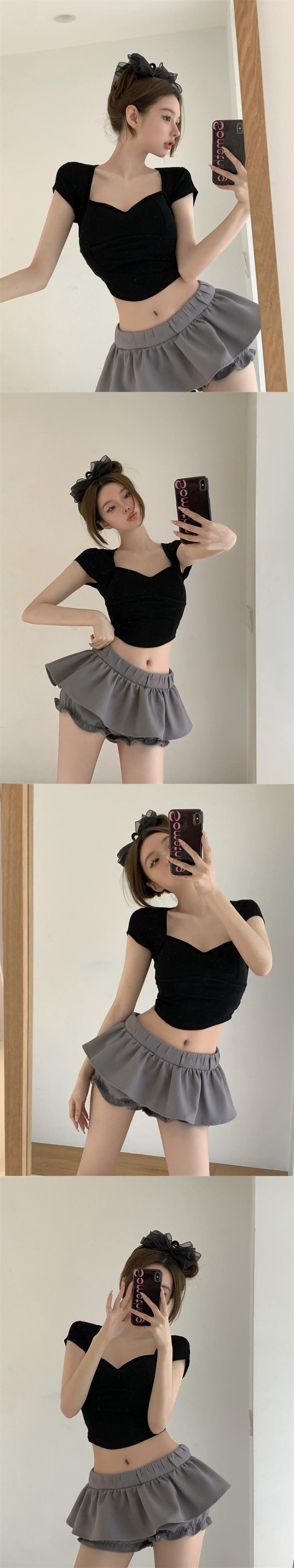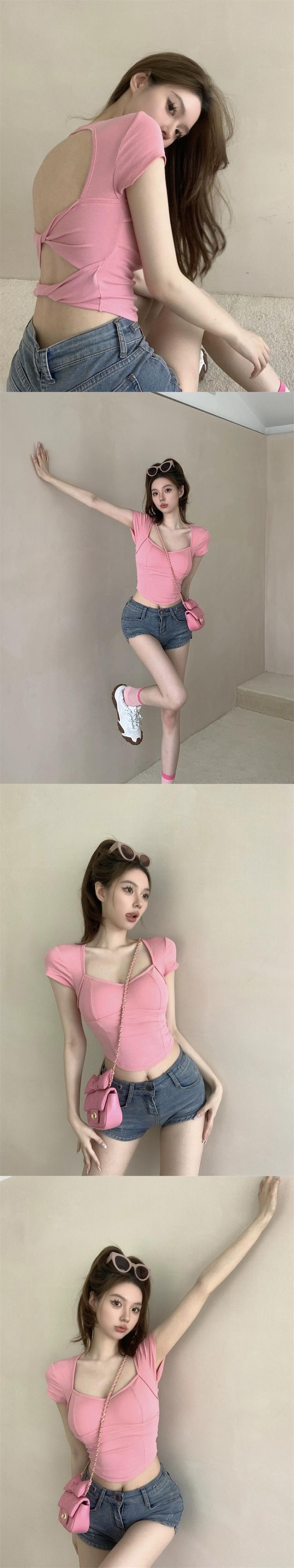 グリーンフロントショルダースクエアカラー半袖Tシャツレディース夏デザインシックシックへそ背中の開いた純粋な欲望のショートトップ サマー 夏物 ピュア スクウェア bstraw43661206665 | beaute25
