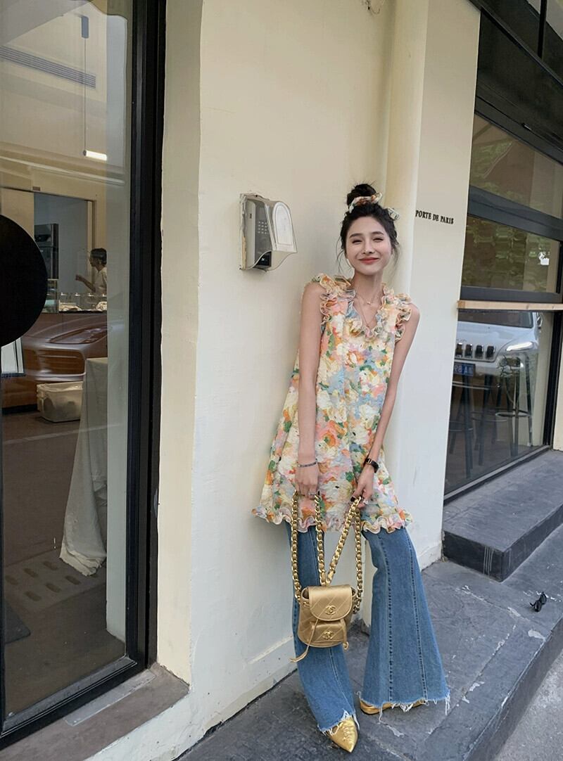 甘い気質フラワーベストドレス女性の夏のノースリーブスリムaラインスカートロマンチックなレトロな摩耗スカート 大人ガーリー スウィート キュート カジュアル サマー 夏物 フラワーデザイン bstraw18201958131 | beaute25