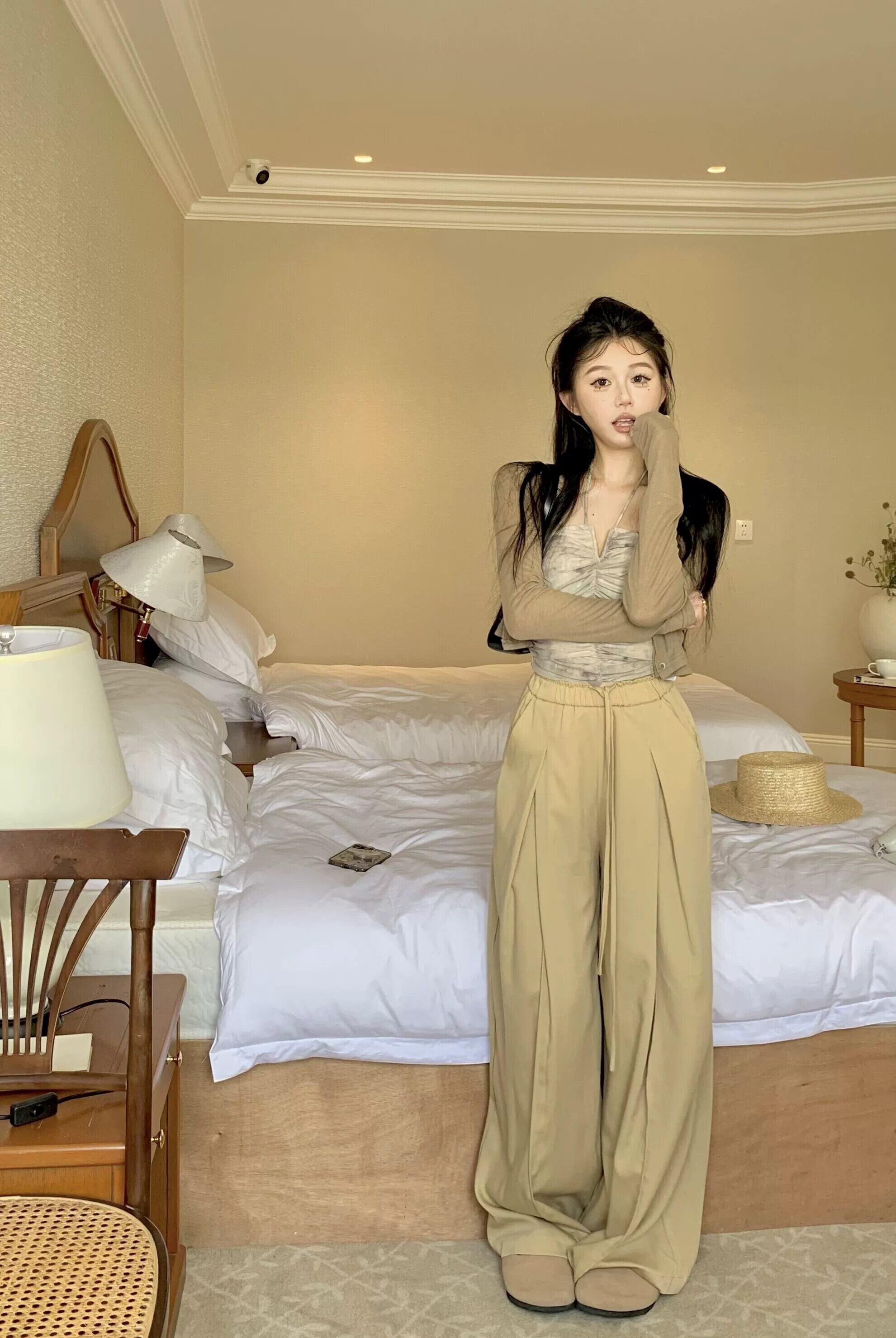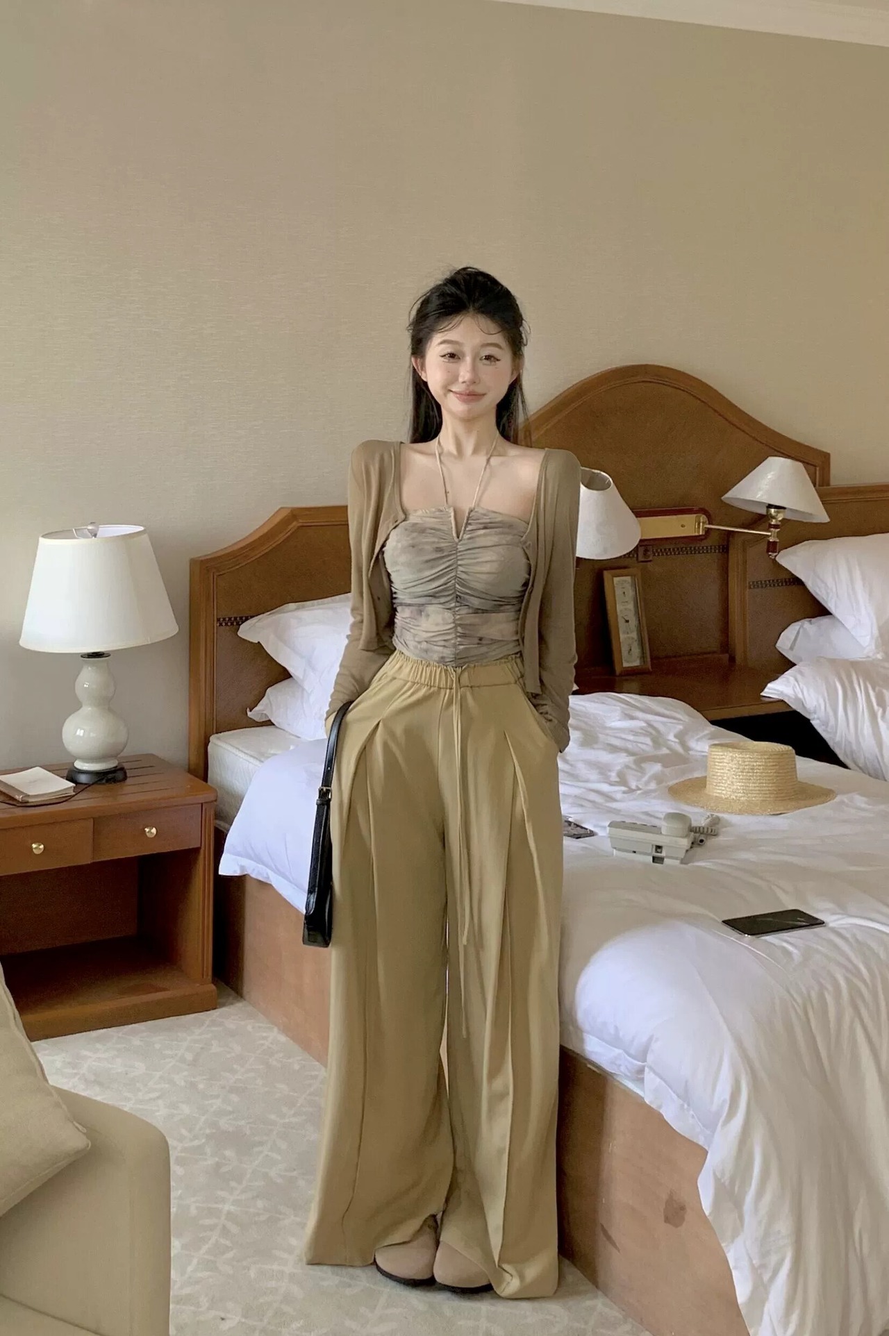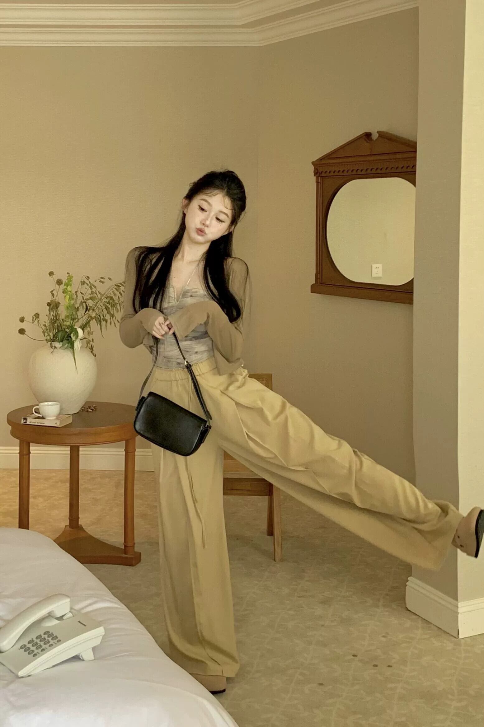 色:コーヒー色のカーディガン,コーヒー色のスリング,コーヒーワイドレッグパンツ