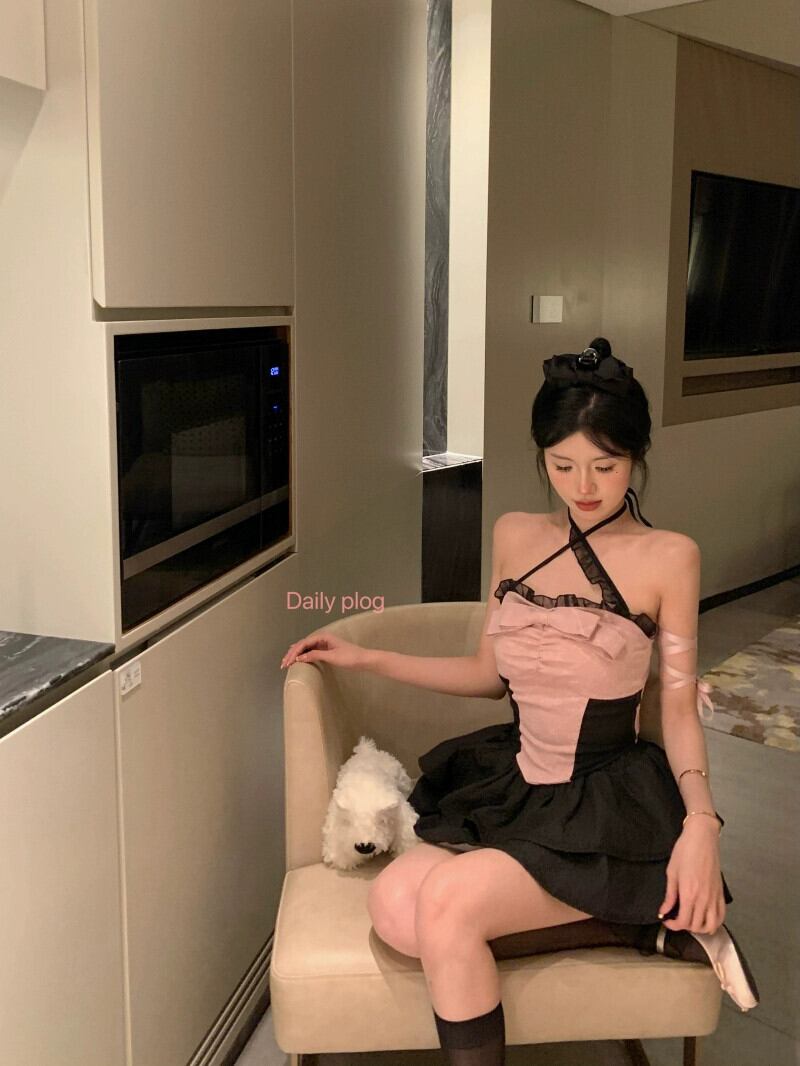 甘い純粋な欲望クロスハンギングネックキャミソール女性の夏のレースステッチインナーセクシーなショートトップアウター 大人ガーリー スウィート キュート カジュアル サマー 夏物 ピュア bstraw87412444736 | beaute25