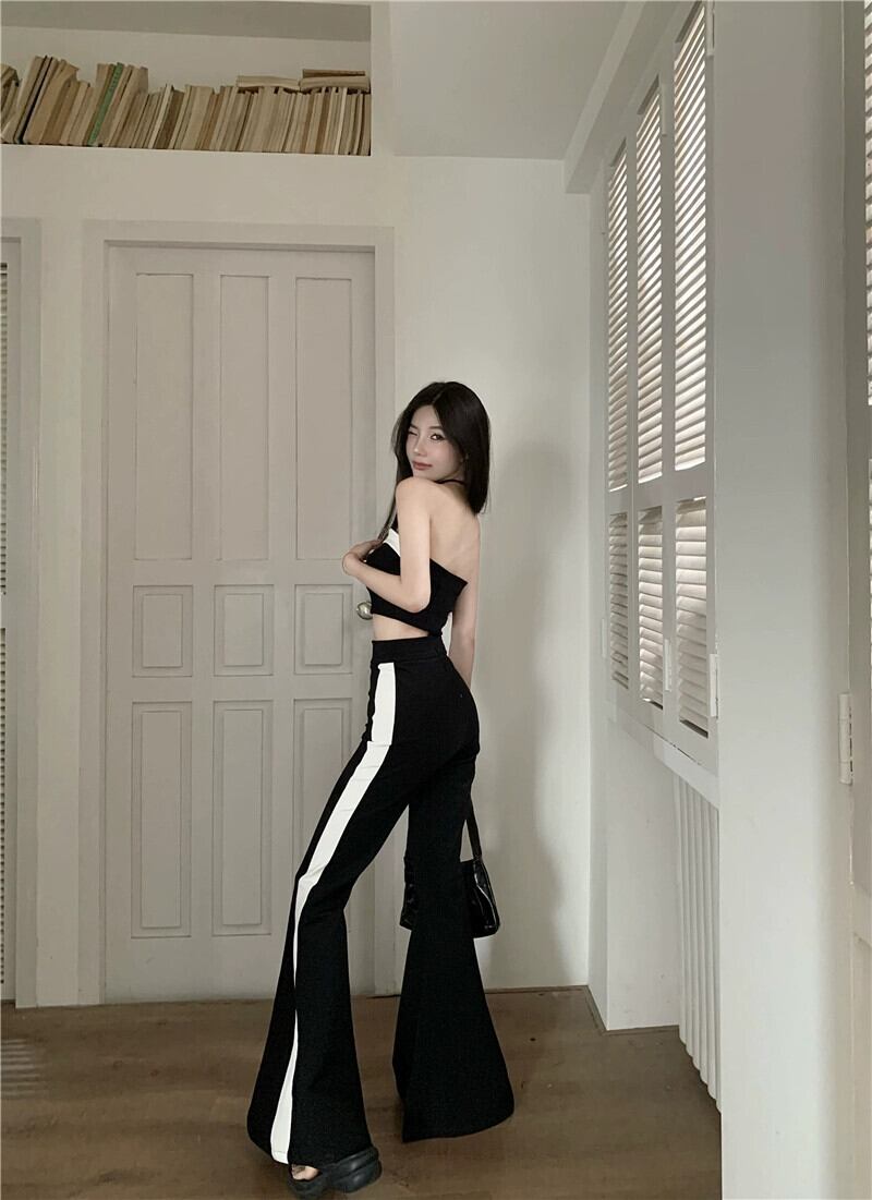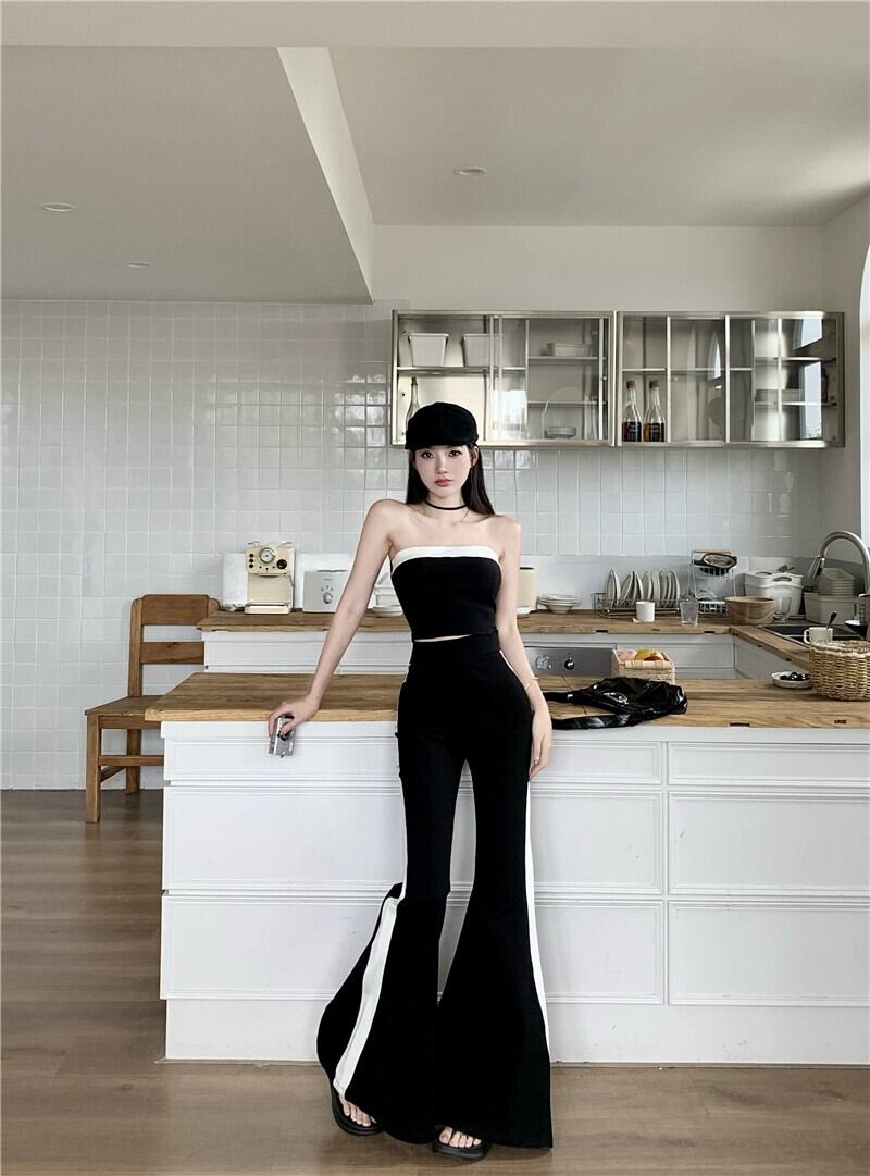 -エンドスーツ ブラックカラーコントラスト チューブトップ ベスト トップ レディース サマーパンツ フレア ワイドパンツ 2点セット レッド 夏物 bstraw97444620379 | beaute25