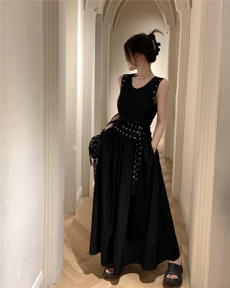 ヘップバーンスタイル黒のベストドレス女性の夏 2023 新しいフレンチスカートセクシーなハイエンドの a ラインロングスカート ブラック サマー 夏物 Aライン bstraw59024525710 | beaute25