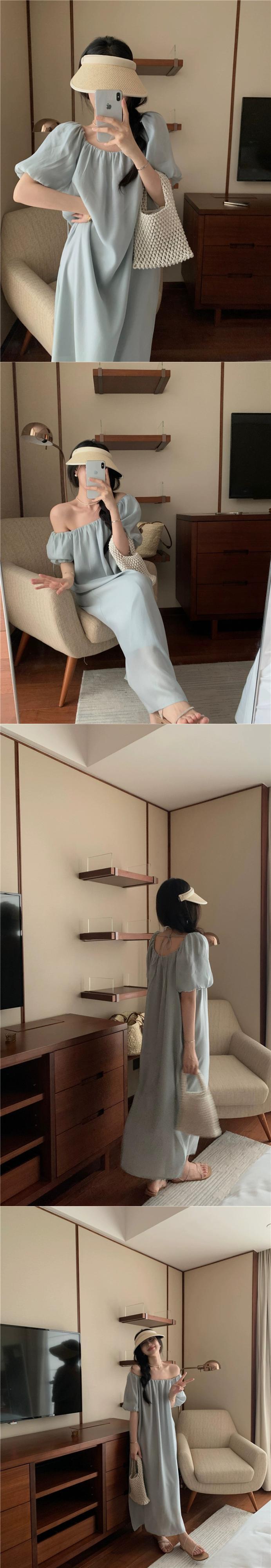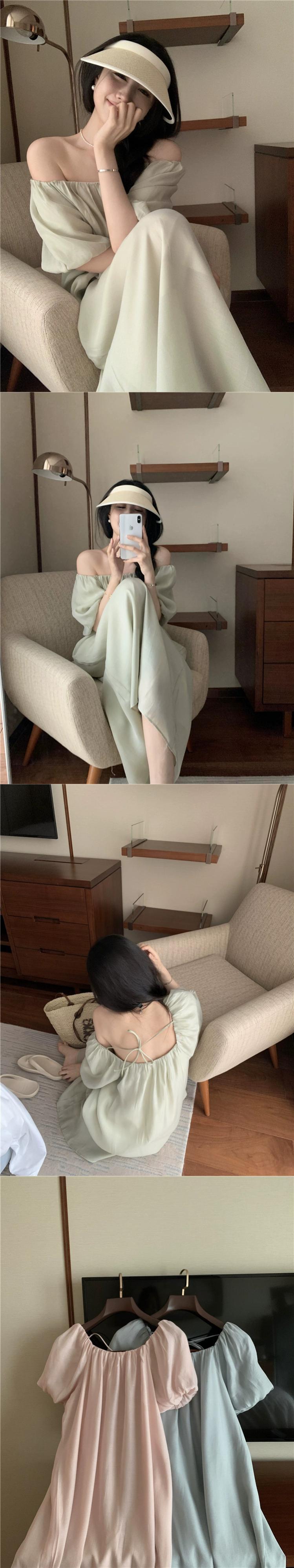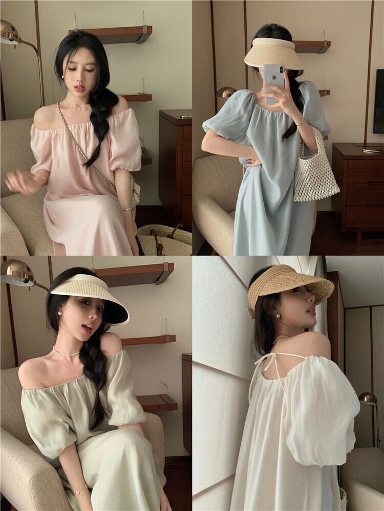 甘い半袖ドレス妖精夏優しいフレンチピンクのパフスリーブスカートスクエアカラー気質aラインロングスカート 大人ガーリー スウィート キュート カジュアル サマー 夏物 スクウェア bstraw19931403646 | beaute25