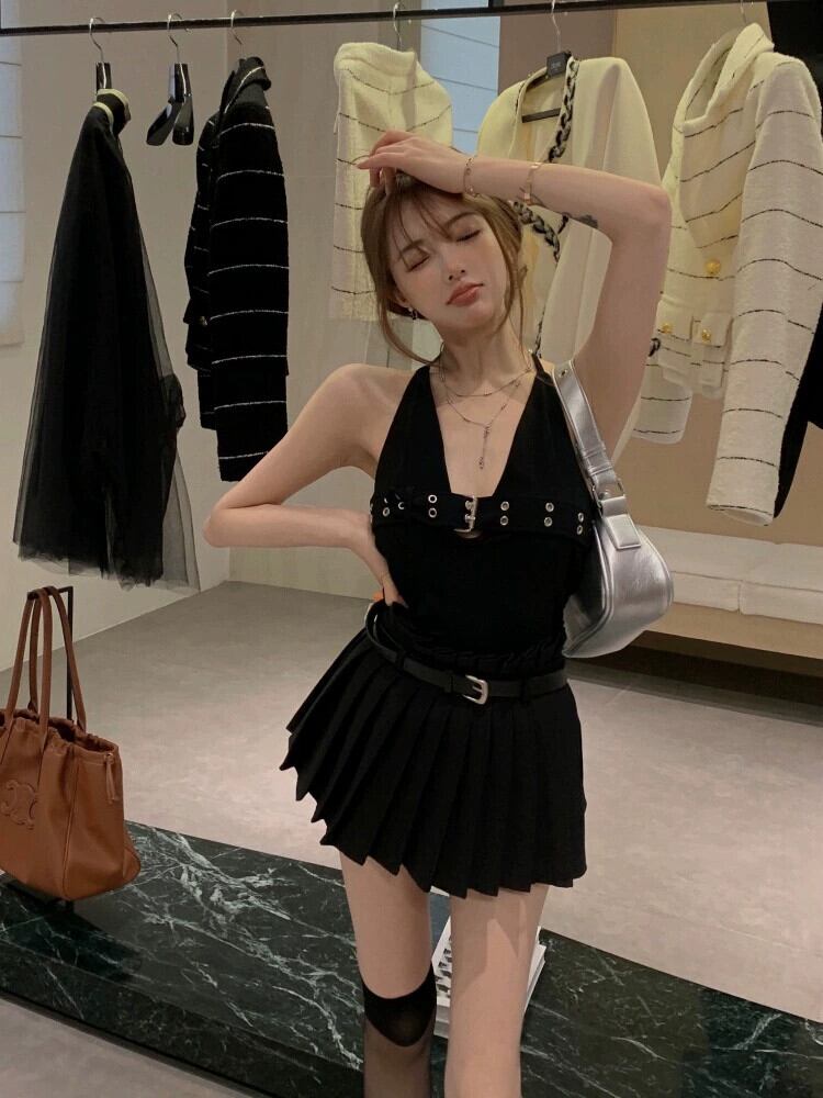 スパイスガールズ ブラック ホルターネック キャミソール レディース アメリカンセンス ニッチ 夏 インナー バックレス ショート トップス アウター サマー 夏物 bstraw61666902531 | beaute25